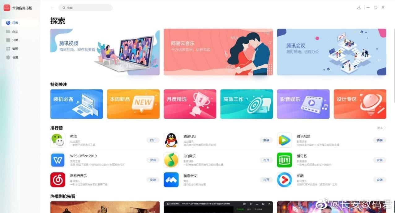 Ebenfalls eingeführt hat Huawei eine AppGallery für Computer, in der man – ähnlich wie beim Microsoft Store – Anwendungen für Laptops und Desktop-Computer findet. Vorgestellt wurde die Desktop-Version der AppGallery am 17. Januar, im Zuge der Präsentation der neuen Laptops MateBook X Pro, MateBook 13 und MateBook 14. Die AppGallery auf dem Computer ist in fünf Bereiche aufgeteilt: