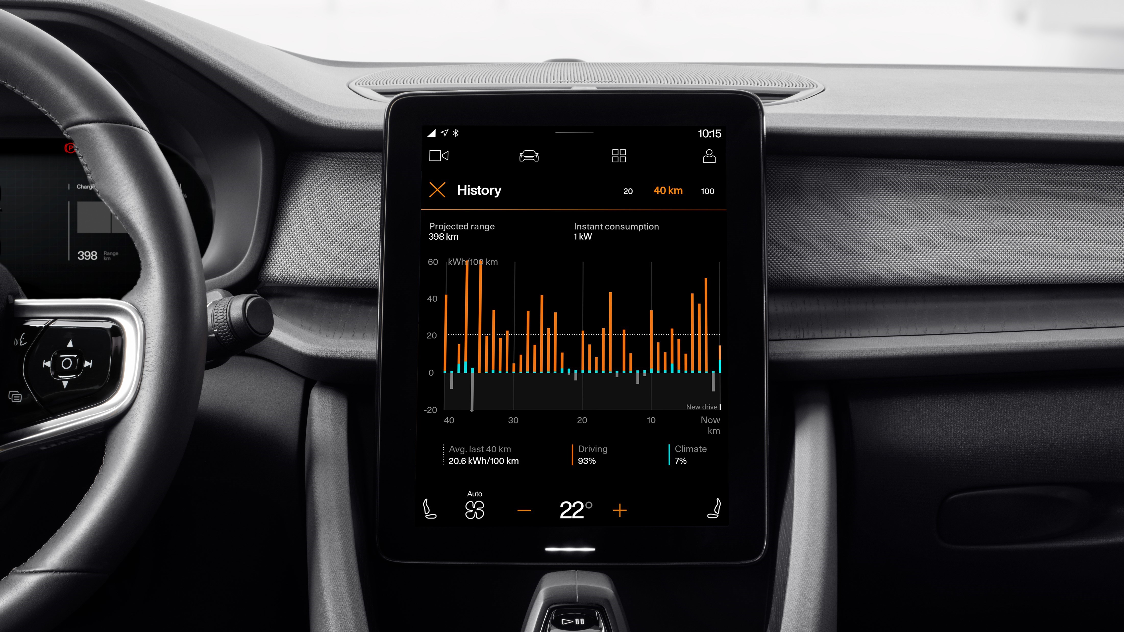 Neben der YouTube App spendiert Polestar der Range Assistant App ein Update. Sie ermöglicht es, den Energieverbrauch über die letzten 20, 40 oder 100 Kilometer im Blick zu behalten. Dank der Echtzeitinformationen der App, soll der Fahrstil angepasst werden können, um die Effizienz zu verbessern. Ein überarbeiteter Algorithmus für die von der App angezeigte voraussichtliche Reichweite berücksichtigt Änderungen der Umweltbedingungen und andere Faktoren, welche die Effizienz beeinflussen können. Die realistischen Reichweitenangaben werden nun im Fahrerdisplay dargestellt, statt der voreingestellten Reichweitenprojektion, die sich auf zertifizierte Standarddaten bezieht.