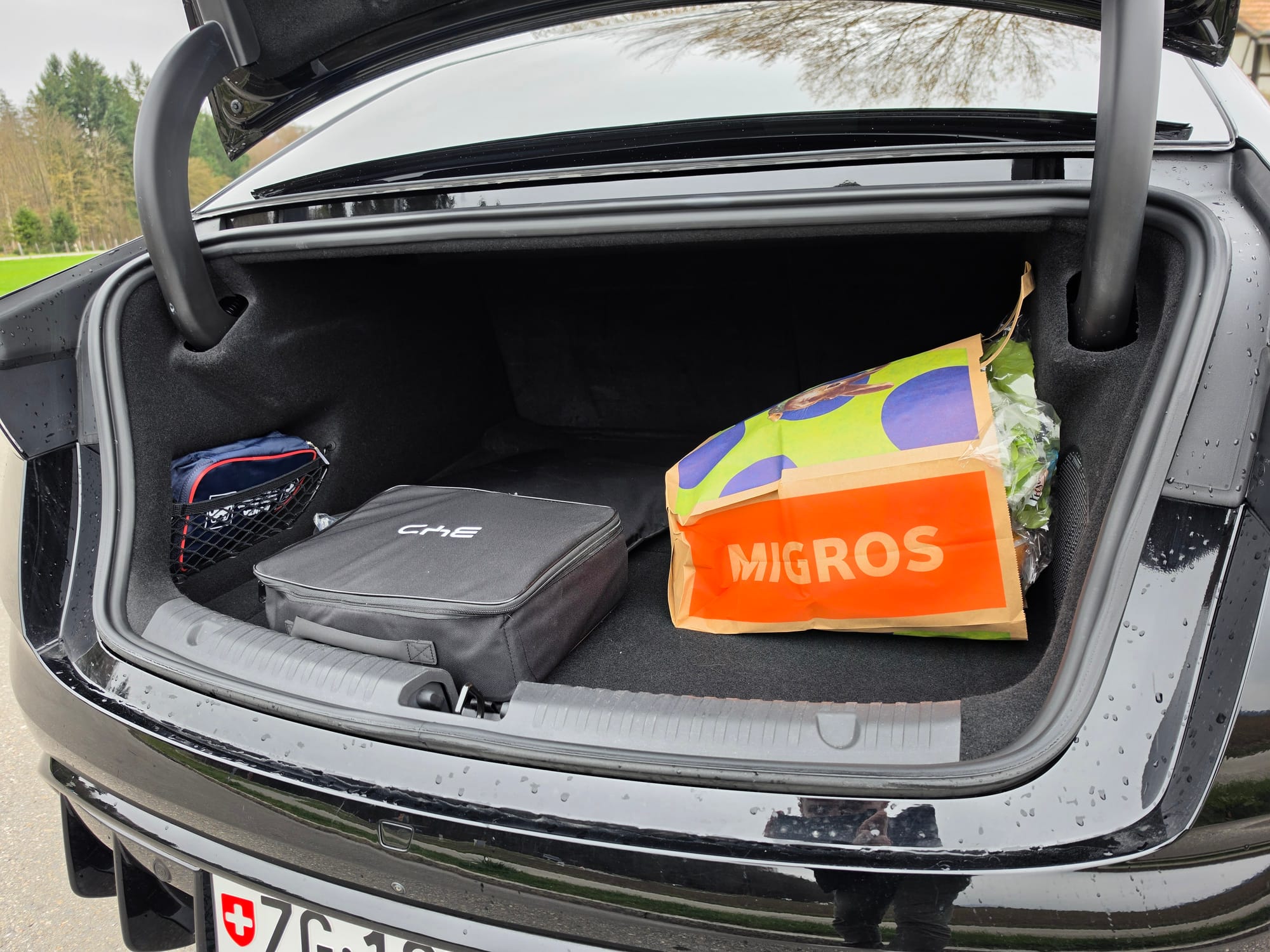 Das Kofferraumvolumen mit Unterboden fällt mit etwas über 400 Liter jetzt nicht wahnsinnig gross aus. Für eine grössere Familie könnte es besonders auf Fahrten in die Ferien schnell knapp werden. Umso besser, gibts unter der Motorhaube zusätzlich einen Frunk mit 53 Liter Volumen. Darin lässt sich etwa das Ladekabel perfekt verstauen.