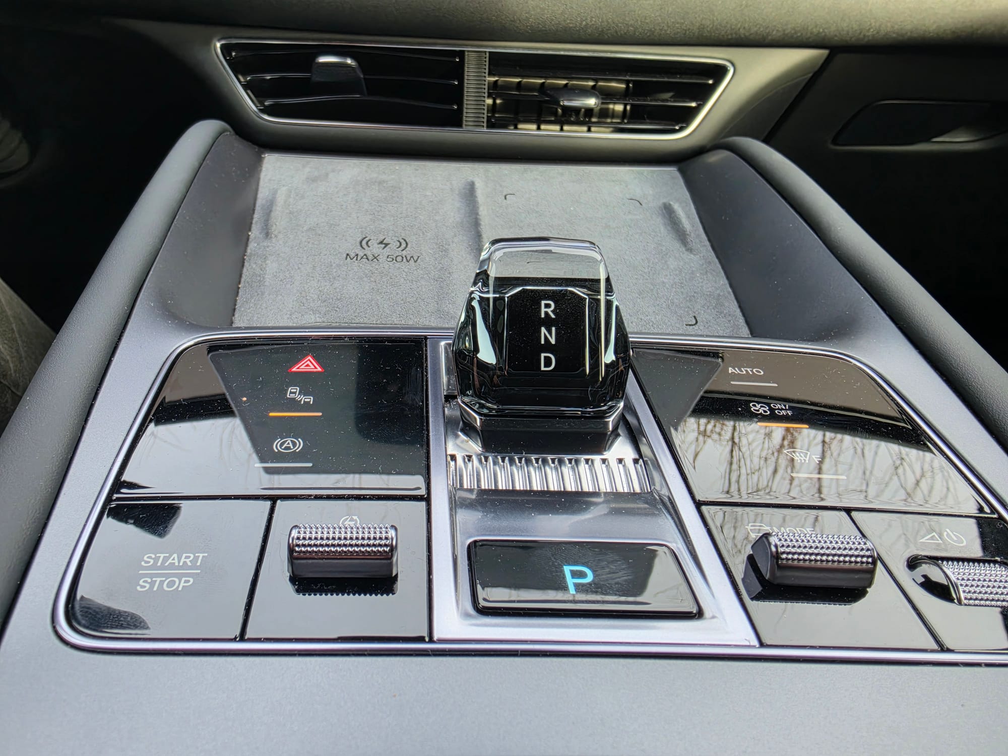 Bei der Variante „Excellence“ ist auch ein Head-up-Display serienmässig mit dabei. Es zeigt die wichtigsten Informationen, darunter auch Navigationshinweise, zuverlässig an. Es gibt in der Mittelkonsole zwei induktive Ladeschalen für Smartphones mit Kühlfunktion. Dadurch wird verhindert, dass das Smartphone während des Ladevorgangs zu warm wird. Gefallen hat mir ausserdem der Gangwahlhebel auf der Mittelkonsole. Damit lässt sich der gewünschte Gang (R, N, D, P) unkompliziert einlegen. Das Dynaudio-Soundsystem verfügt über zwölf Lautsprecher und bietet eine insgesamt tolle Qualität.