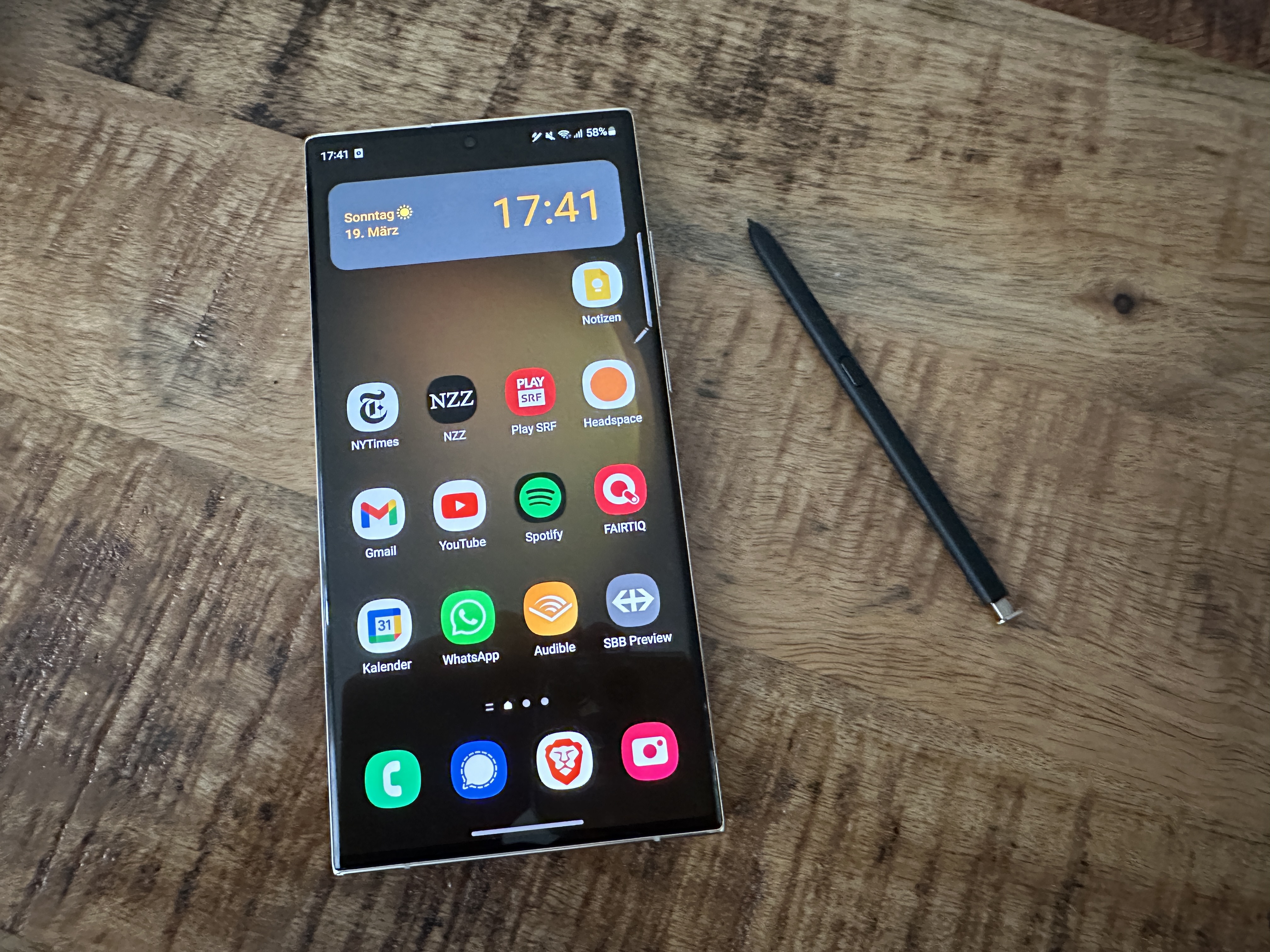 So dauert das Laden mit dem Fast-Charging-Kabel von Samsung knapp eine Stunde. Kabellos dümpeln wir sogar bei 15 Watt herum. Warum das so ist? Das weiss nur Samsung. Meine Theorie: Samsung spart sich superschnelles Laden als grosses Update für das Galaxy S24 Ultra.