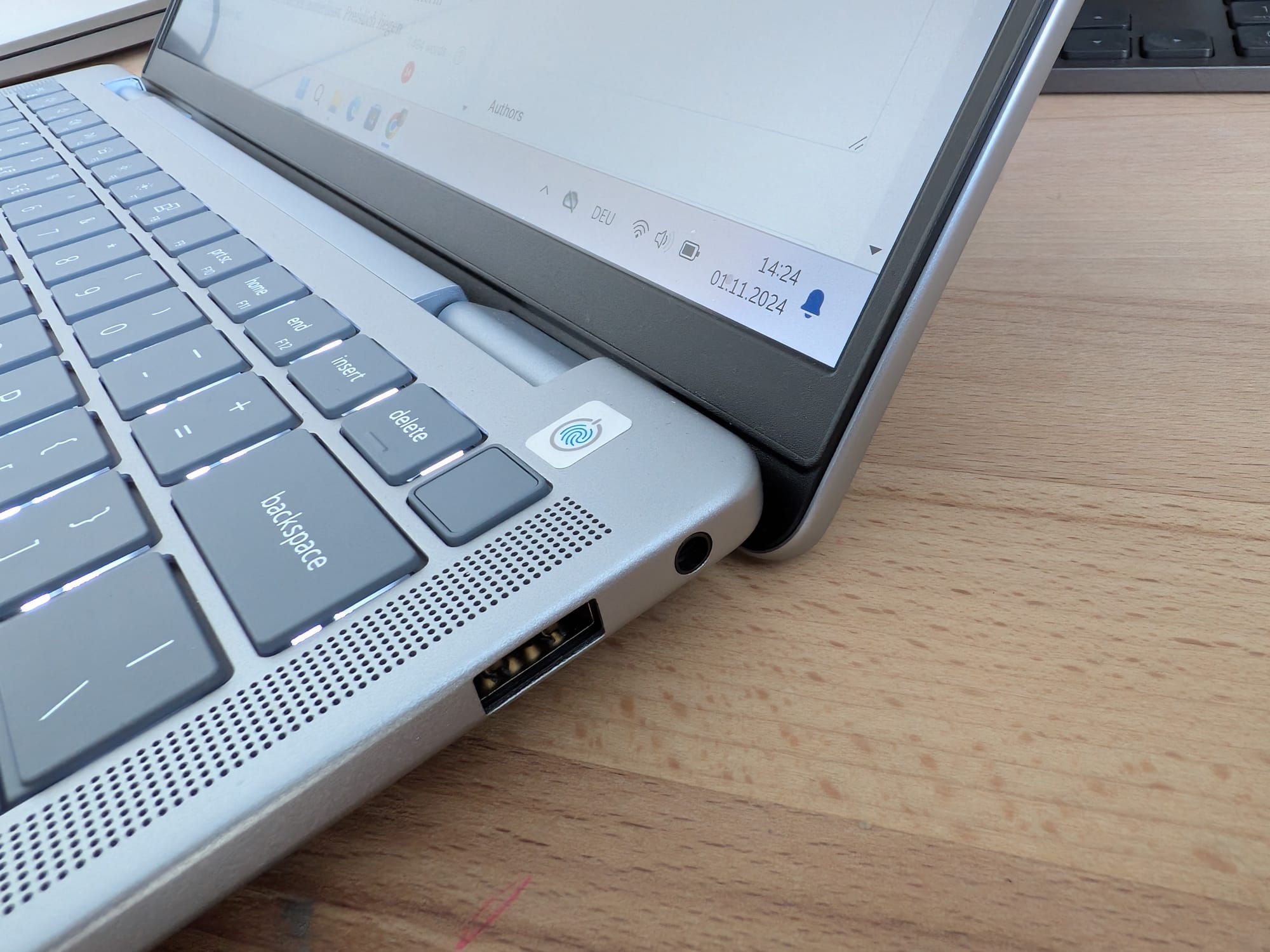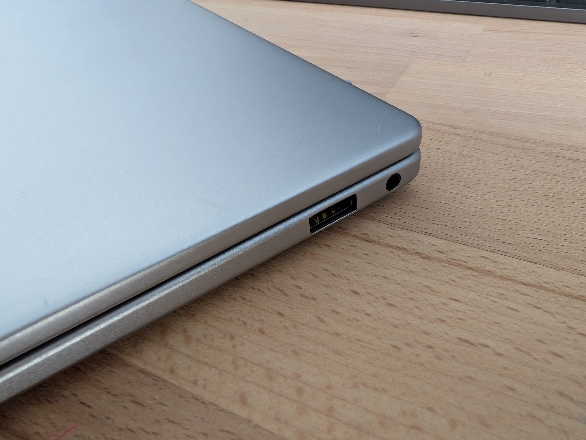Auf der rechten Seite gibt es ein USB-A-Anschluss und einen 3,5-mm-Klinkenanschluss. Damit lässt das Notebook kaum Wünsche übrig, was die physischen Anschlüsse betrifft.