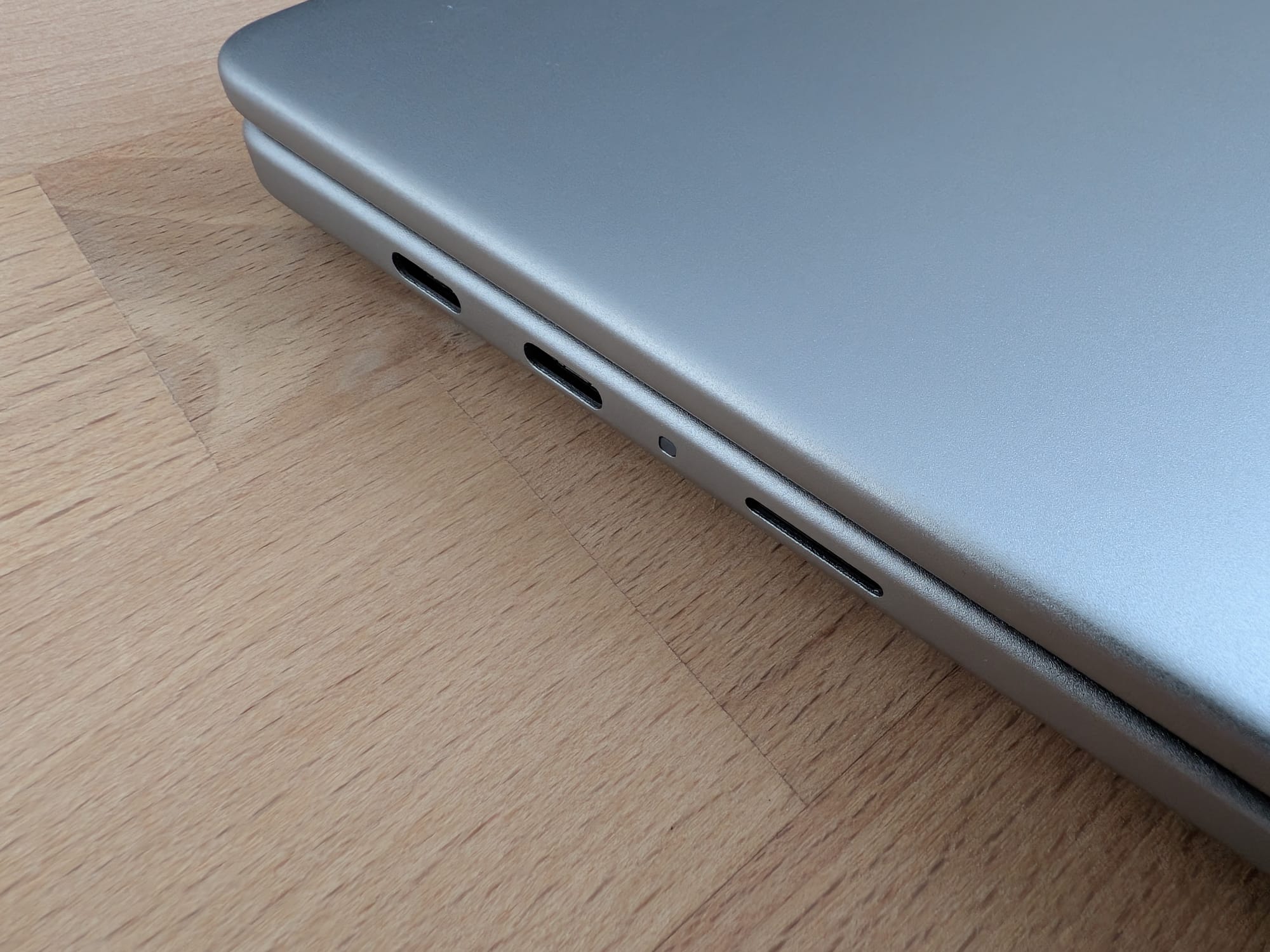 Das matte Display hat auf Reisen den Vorteil, dass kaum Reflexionen auftreten. Während die Farbwiedergabe und die Kontraste wirklich gut sind, hätte ich mir hier und da eine etwas höhere Helligkeit als die gebotenen 400 Nits gewünscht. Es ist jetzt nicht so, dass du damit nicht auf Reisen, beispielsweise im Zug, arbeiten könntest, aber hier und da wäre eine höhere Helligkeit wünschenswert gewesen.