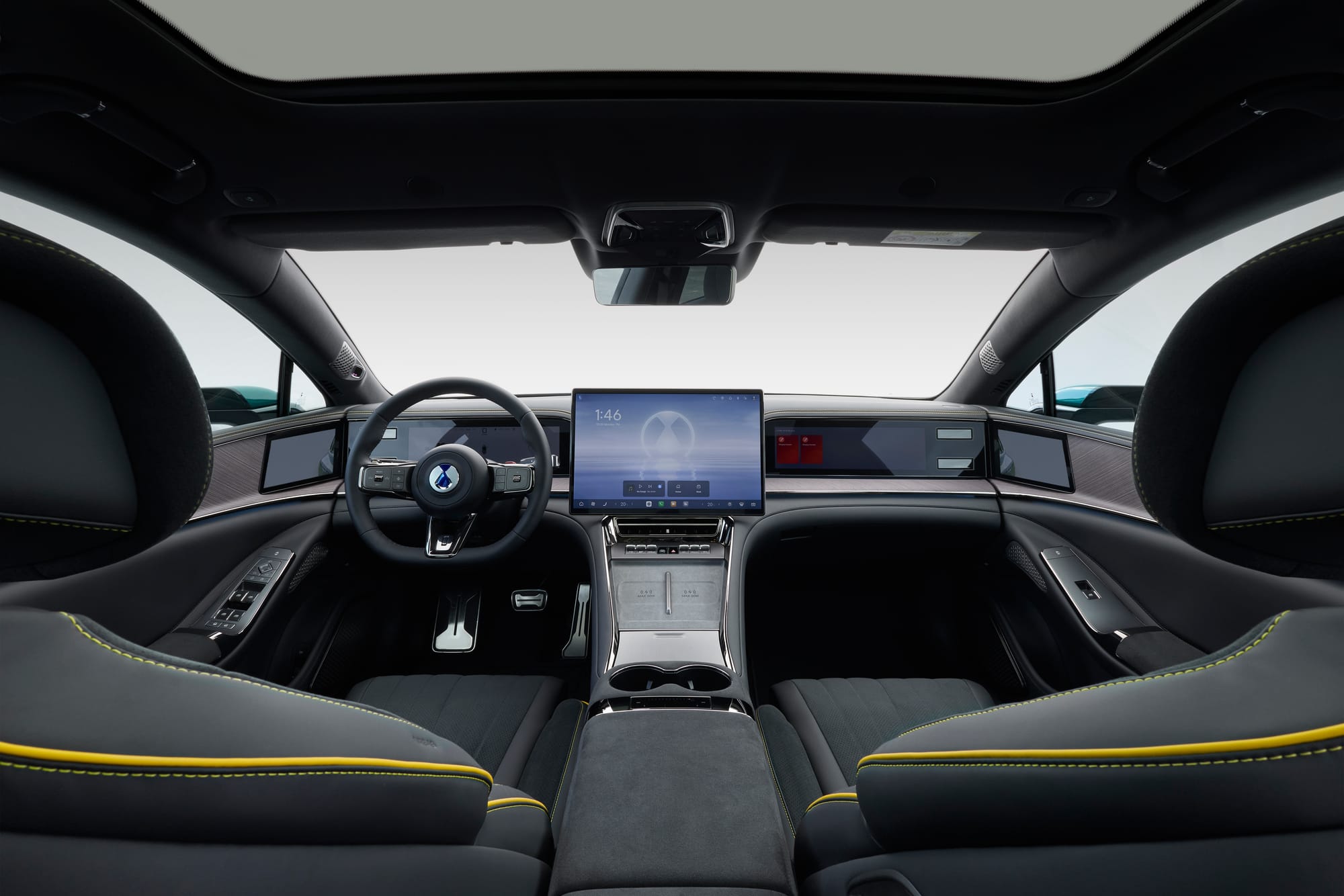 Neben einem grossen, zentralen 17,3-Zoll-Display, das über der Mittelkonsole zu schweben scheint, gibt es im Cockpit ein 13,2-Zoll-Kombiinstrument für den Fahrer sowie ein gleich grosses Display für den Beifahrer. Zudem steht ein 50 Zoll grosses Augmented-Reality-Head-up-Display zur Verfügung. Optional sind auch Bildschirme in den Türen erhältlich, die hochauflösende Bilder von digitalen Seitenspiegeln anzeigen.