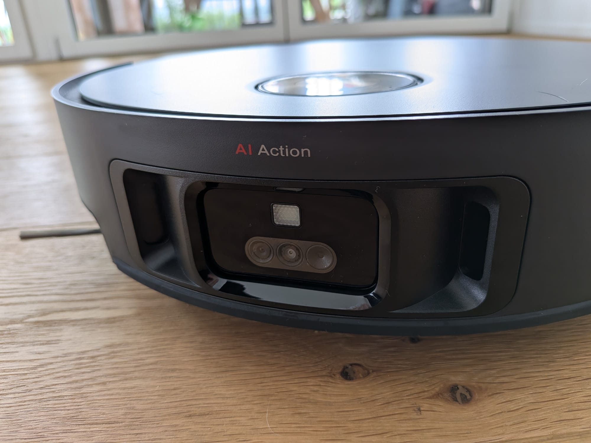 Während der L40 Ultra noch über drei physische Tasten am Turm verfügte, sind es beim X50 UC nur noch zwei. Neben den zwei Tasten sind drei Löcher auf dem Turm zu erkennen. Dahinter verstecken sich Mikrofone, die für den integrierten Sprachassistenten benötigt werden. Ebenfalls im Turm sind diverse Sensoren integriert, die für die intelligente Navigation benötigt werden.