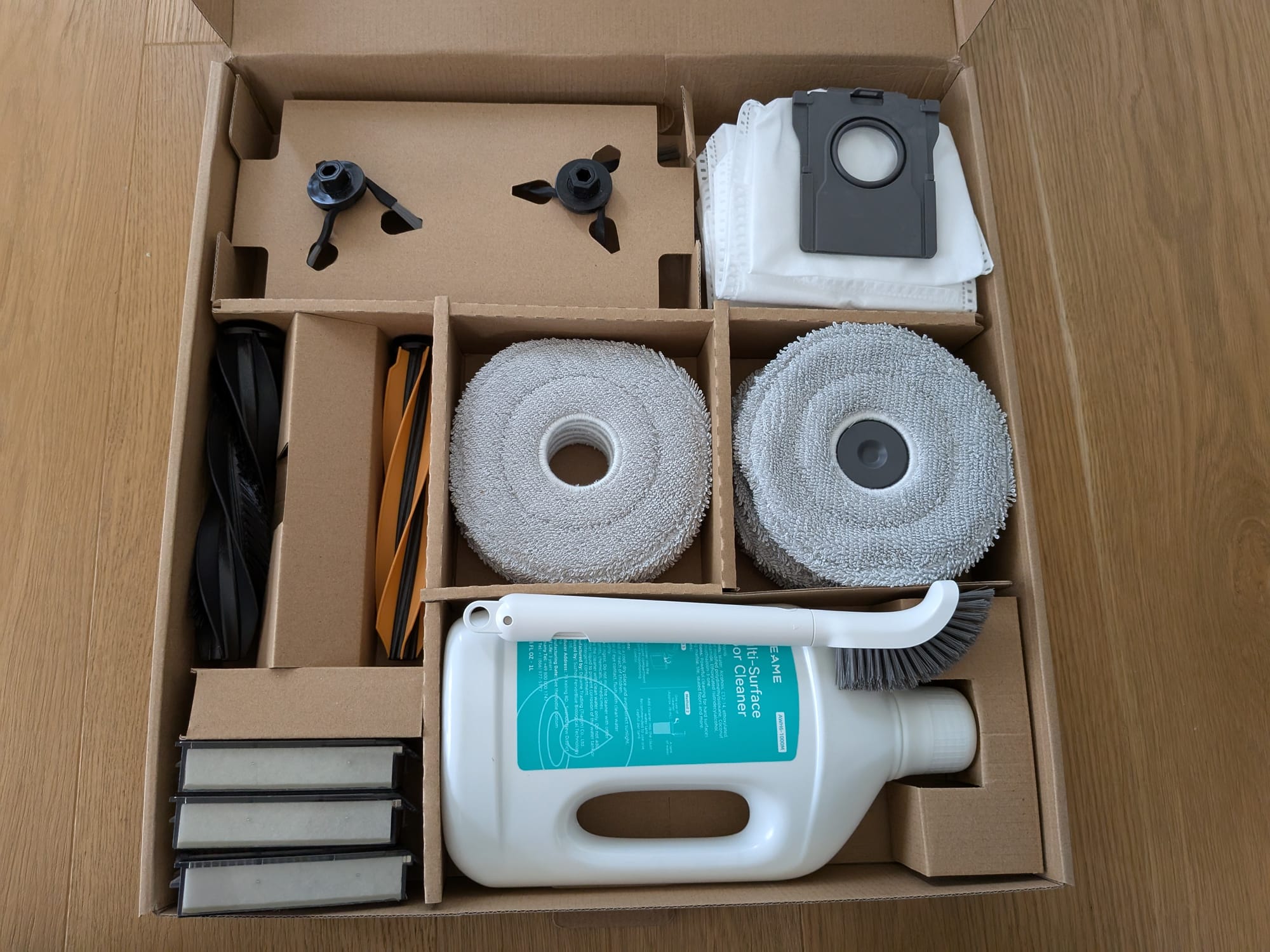 Vorbildlich zeigt sich Dreame ebenfalls bei der Verpackung. Alles hat seinen festen Platz und ist ebenso sicher verpackt. Beim Transport sollte so jedenfalls nichts kaputt gehen.