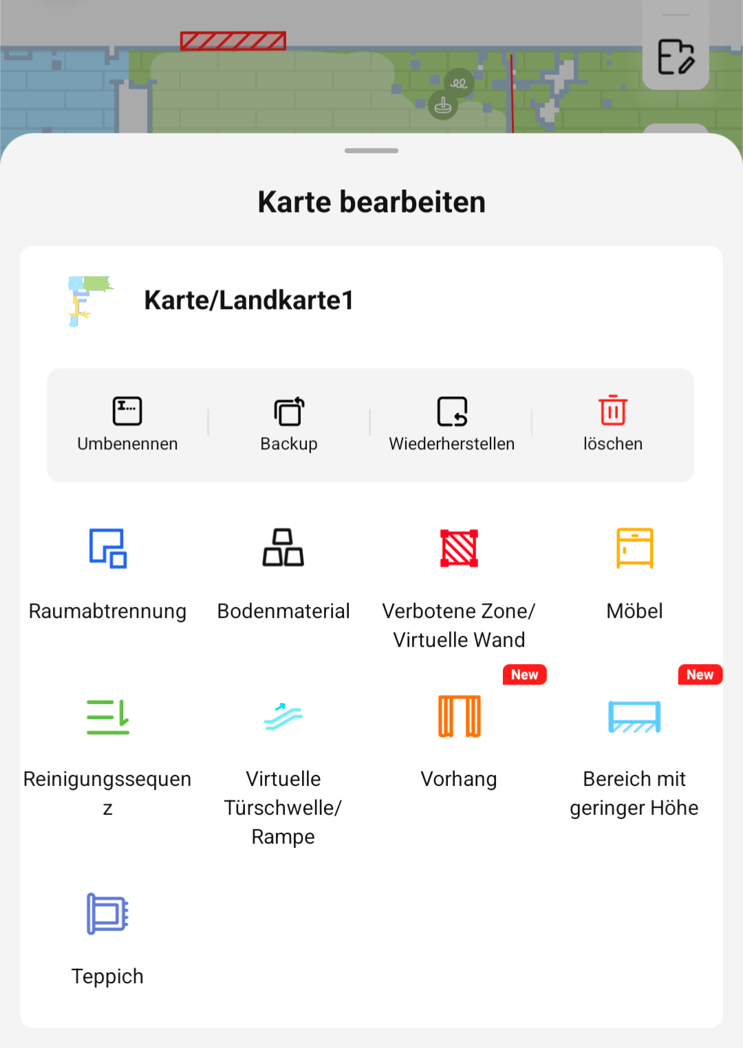 Die einzelnen Räume können zusätzlich unterteilt und virtuelle Sperrzonen eingerichtet werden. Sind Sperrzonen definiert, lässt der Dreame X50 Ultra Complete diese Stellen aus. Auch das hat mit einer äusserst hohen Präzision funktioniert. Cool ist, dass der Saugroboter die Beschaffenheit des Bodens sowie Hindernisse wie Stromkabel oder andere Gegenstände erkennt und diese auf der Karte in der Dreamehome-App angezeigt werden. Ebenfalls werden Bereiche angezeigt, wo der Turm abgesenkt werden muss.