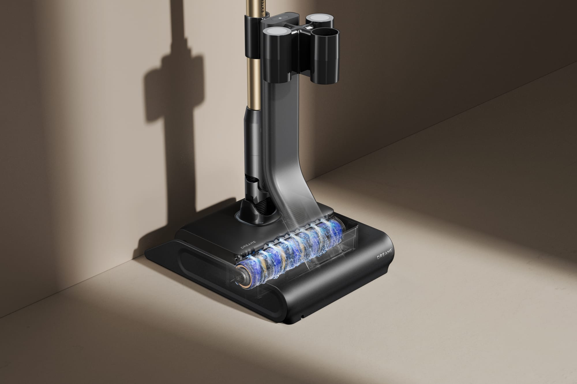 Die zugehörige Basisstation reinigt die Walze automatisch und trocknet sie anschliessend mit 70 °C heisser Luft. Dadurch wird der manuelle Aufwand minimiert und der 2-in-1-Akkusauger bleibt jederzeit einsatzbereit.
