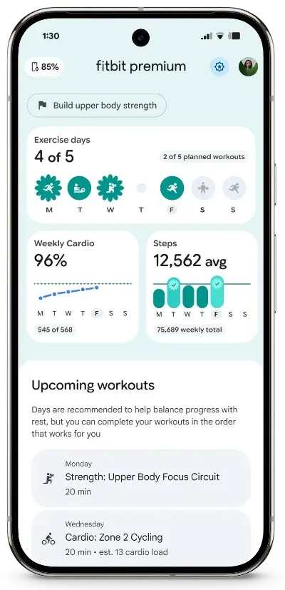 - Fitness: Verfolge wöchentliche Fortschritte, sehe den personalisierten Plan an und verfolge alle Kernkennzahlen, einschliesslich der Herz-Kreislauf-Belastung (jetzt wöchentlich)