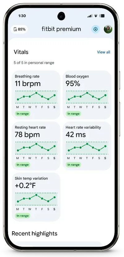 - Gesundheit: Verstehe die Vitalwerte und andere wichtige Kennzahlen – wie HRV oder Gewicht – in dieser zentralen Anlaufstelle