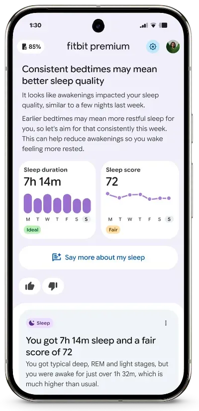Frag: „Warum bin ich heute müde aufgewacht?“, um eine Analyse der möglichen Ursachen für deinen Schlaf zu bekommen.
