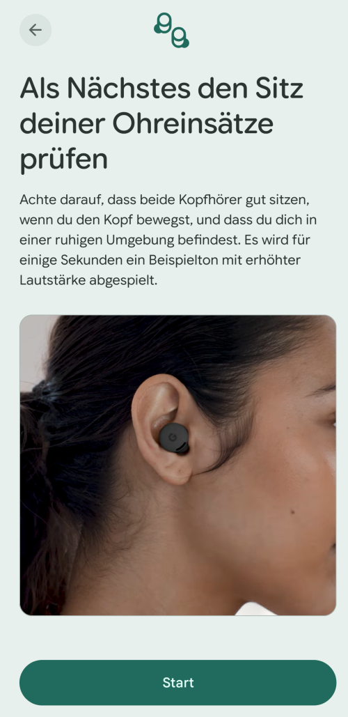 Was den Tragekomfort anbelangt, gibt es nichts zu bemängeln. Google legt den Pixel Buds 2a gleich vier verschiedene Ohreinsätze bei: sehr klein, klein, mittelgross und gross. Es ist auf jeden Fall empfehlenswert, mit den verschiedenen Ohreinsätzen zu experimentieren, um die perfekte Grösse für den eigenen Gehörgang zu finden. Mittels der Pixel-Buds-App kann der Sitz der Ohreinsätze zusätzlich geprüft werden.