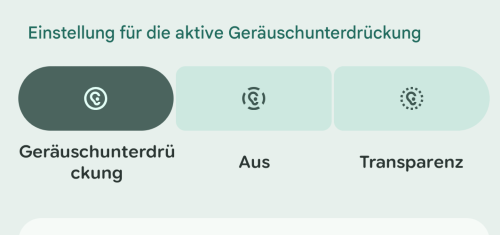 Mit den Pixel Buds 2a führt Google erstmals aktive Geräuschunterdrückung (ANC) in seiner A-Serie ein. Das Silent Seal 1.5-System ist zwar nicht ganz so leistungsfähig, wie das ANC der rund 100 Franken teureren Pixel Buds Pro 2, aber es reicht im Alltag aus. Wenn die Geräuschunterdrückung bei gleichzeitiger Musikwiedergabe aktiv ist, werden die Aussengeräusche nahezu komplett unterdrückt. Das funktioniert auch an lauteren Orten wie dem Bahnhof. Auf eine adaptive Geräuschunterdrückung muss hingegen bei den Pixel Buds 2a verzichtet werden.