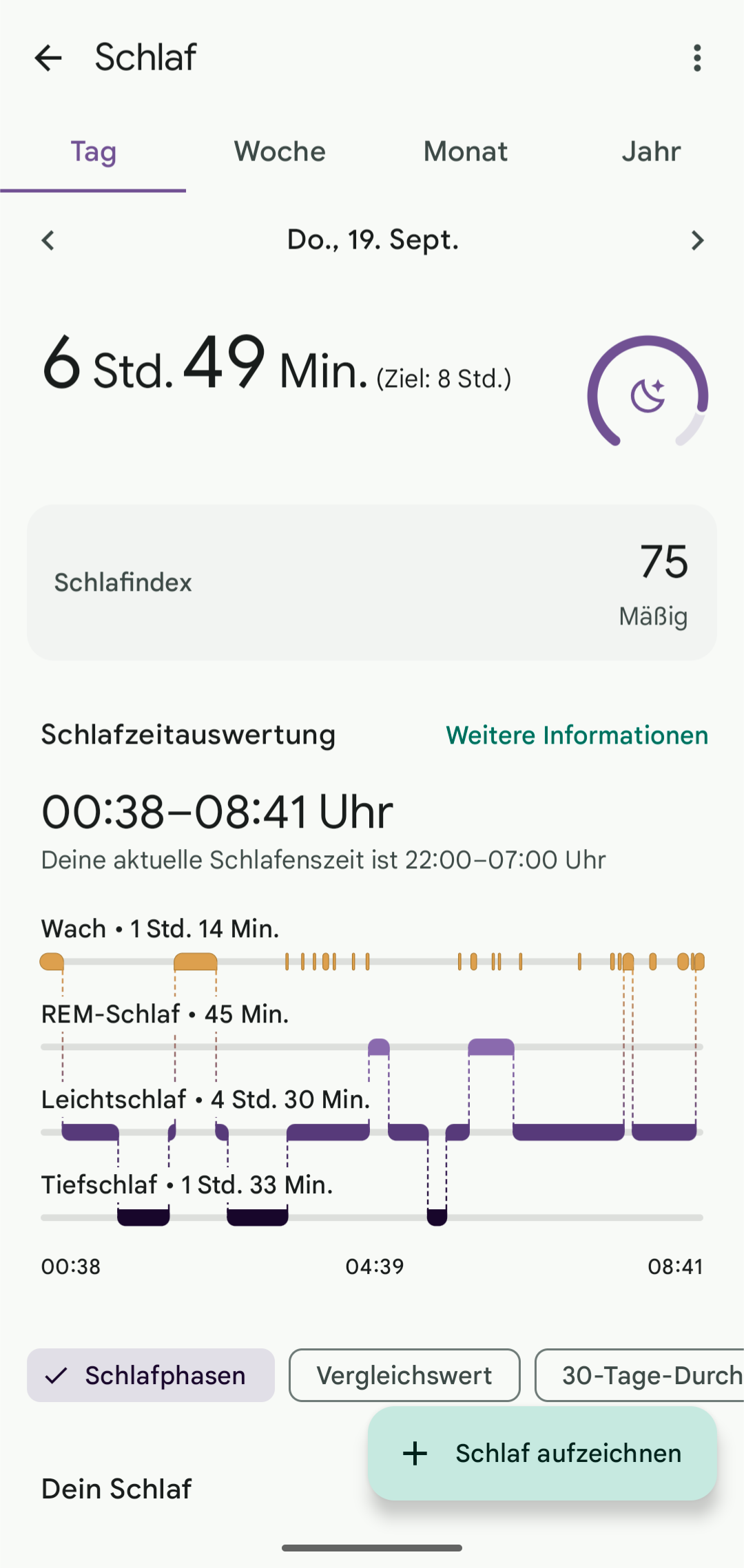 Alle Gesundheits- und Sportdaten fliessen in die Fitbit-App ein. Google Fit, das zwar parallel dazu weiterhin im Google Play Store besteht, wird nicht mehr benötigt. Die App bietet zwar einen ausführlichen, aber nicht immer übersichtlichen Blick über auf alle gesammelten Vitaldaten. Ab und an musste ich kurz suchen, um die gewünschte Funktion zu finden. In dieser Hinsicht habe ich schon bessere und vor allem übersichtlichere Fitness-Apps gesehen.