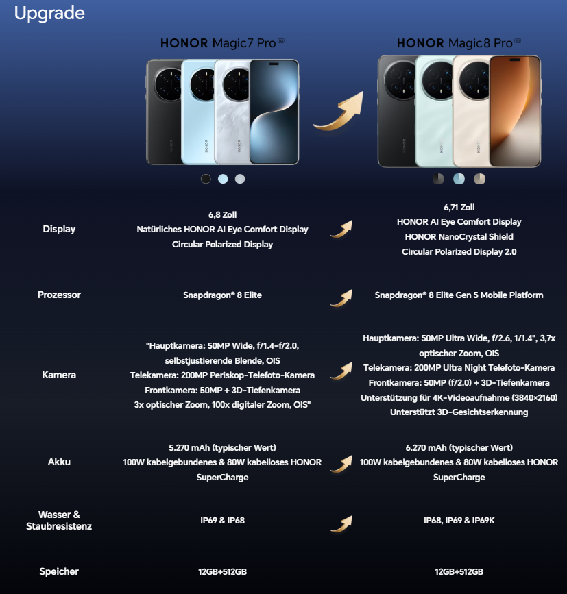 Honor Magic 7 Pro vs. Magic 8 Pro: Das sind die Unterschiede