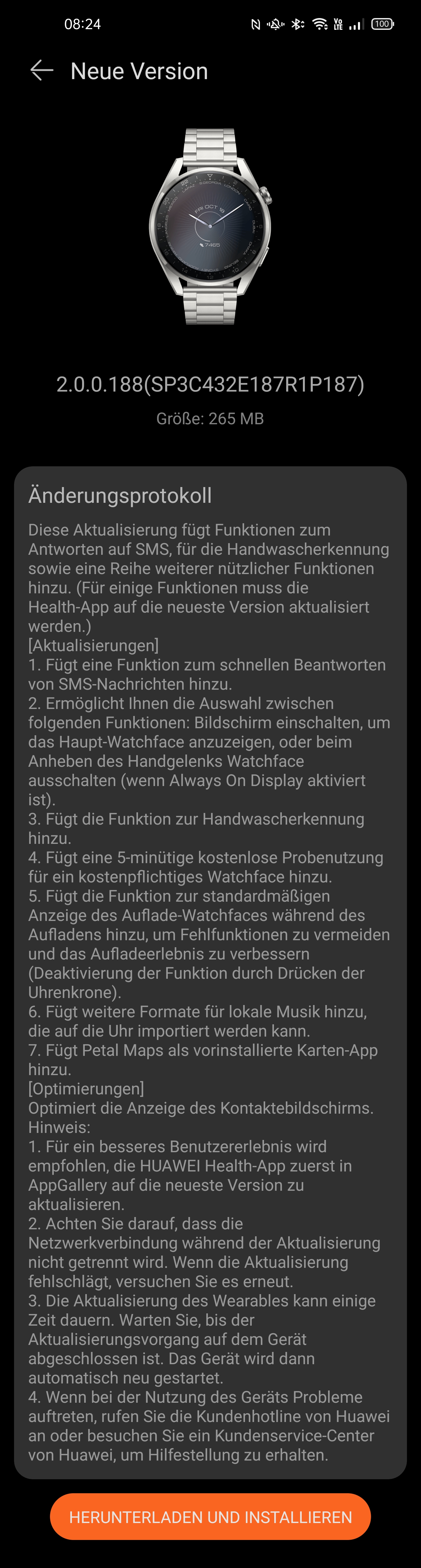 Huawei Watch 3 Pro: Changelog zum Update auf 2.0.0.188