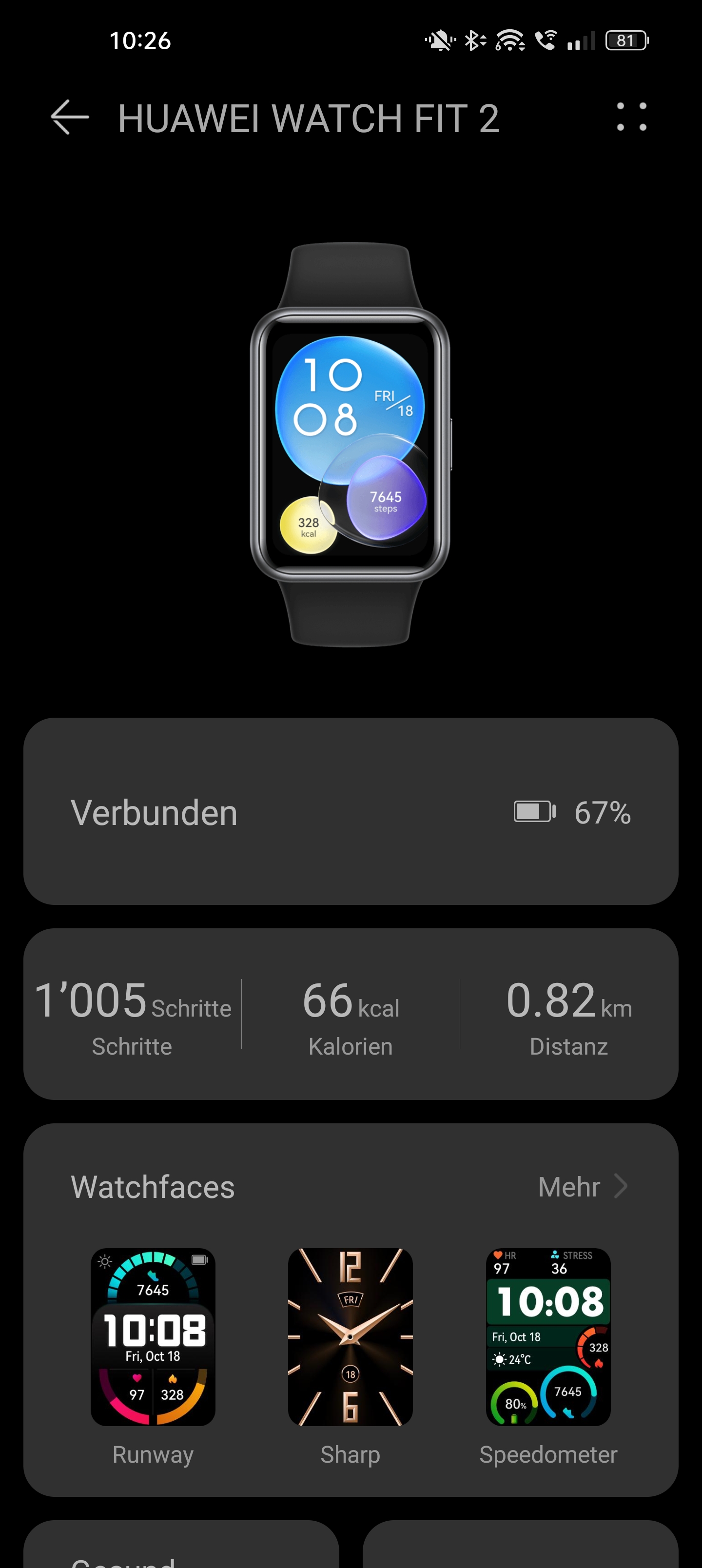 Ist die korrekte Version der Health-App auf dem Smartphone installiert, lässt sich die Watch Fit 2 problemlos via Bluetooth koppeln. Die Inbetriebnahme ist schnell durchlaufen, so dass die Watch einsatzbereit ist.