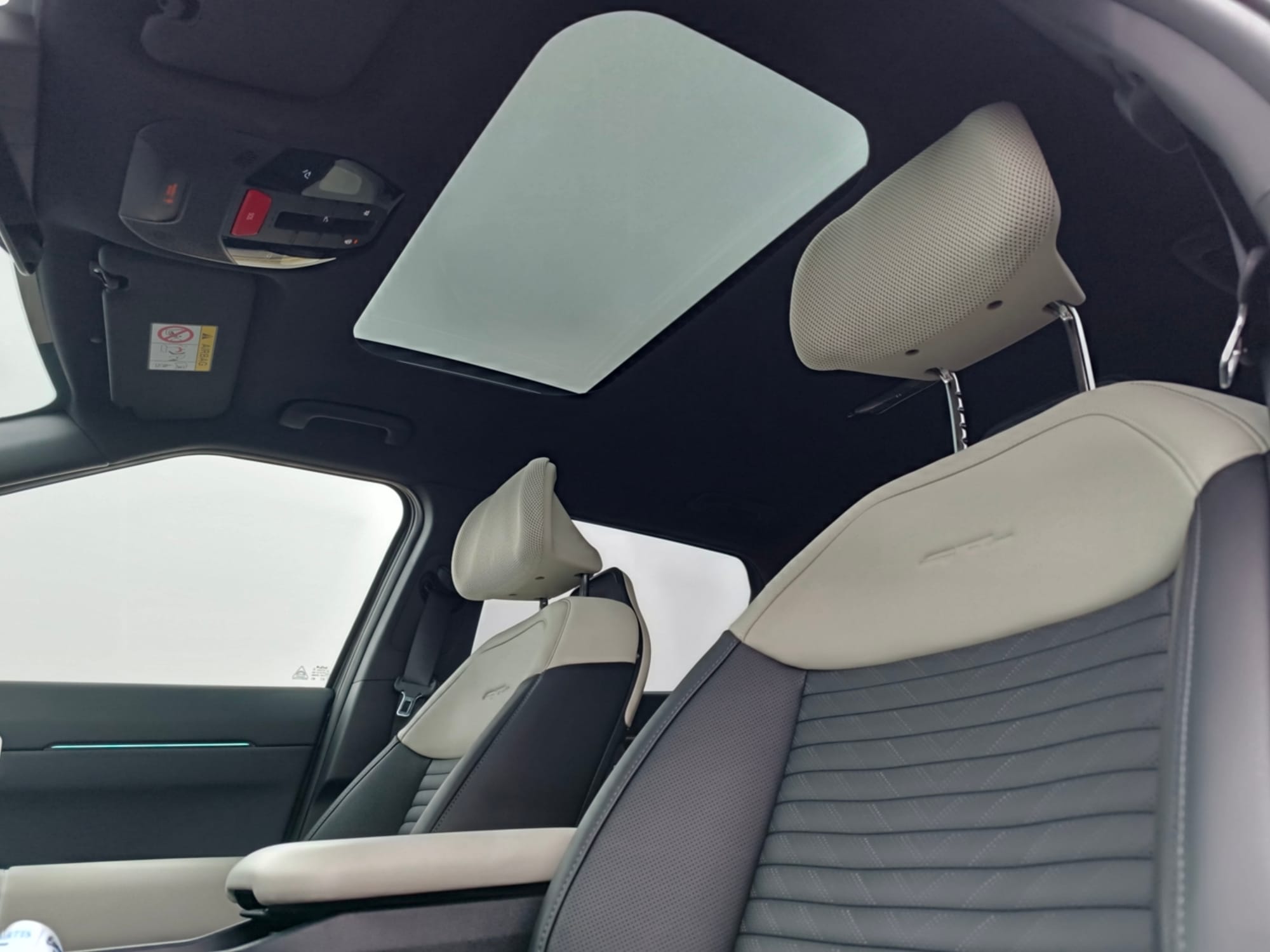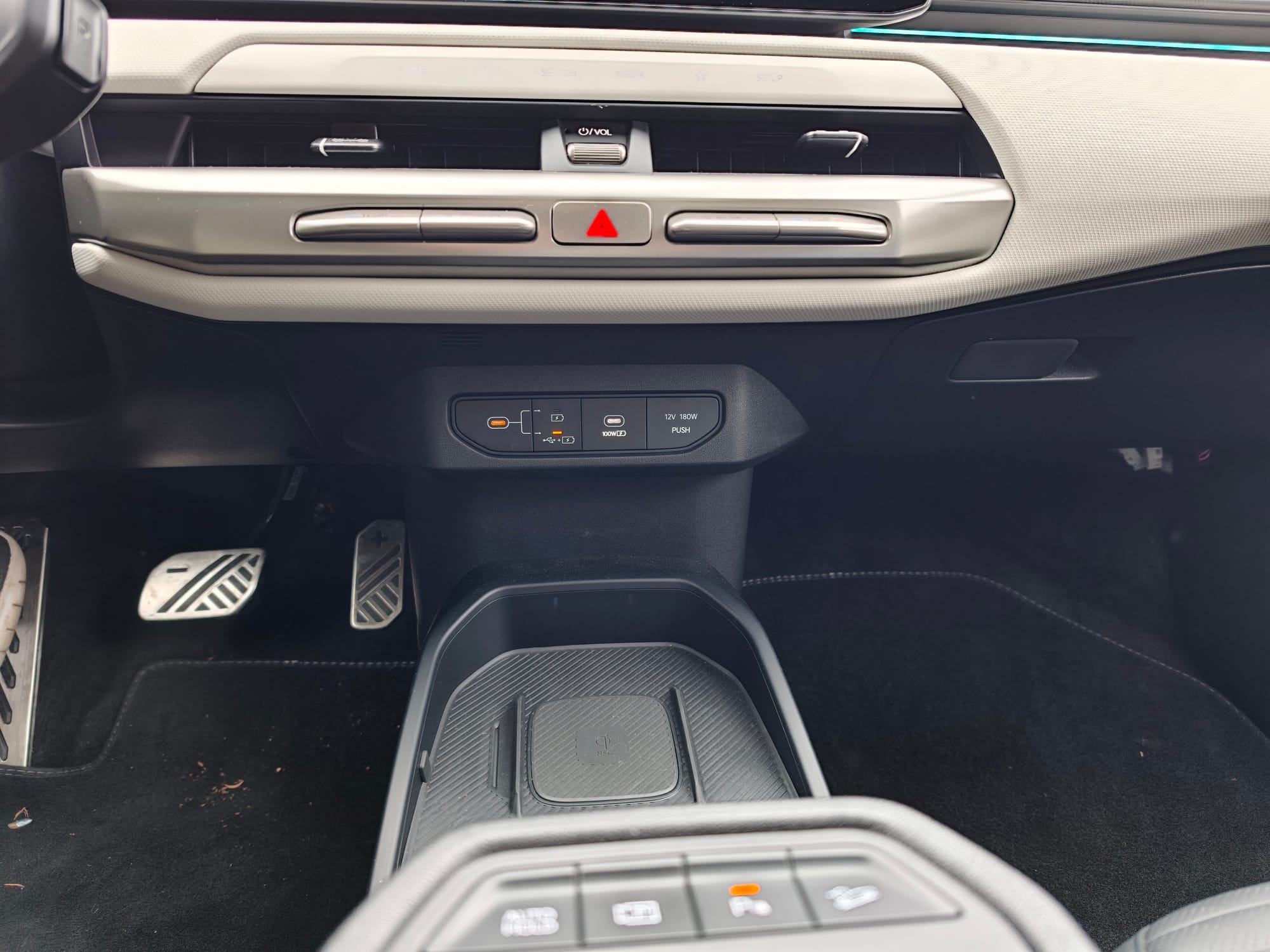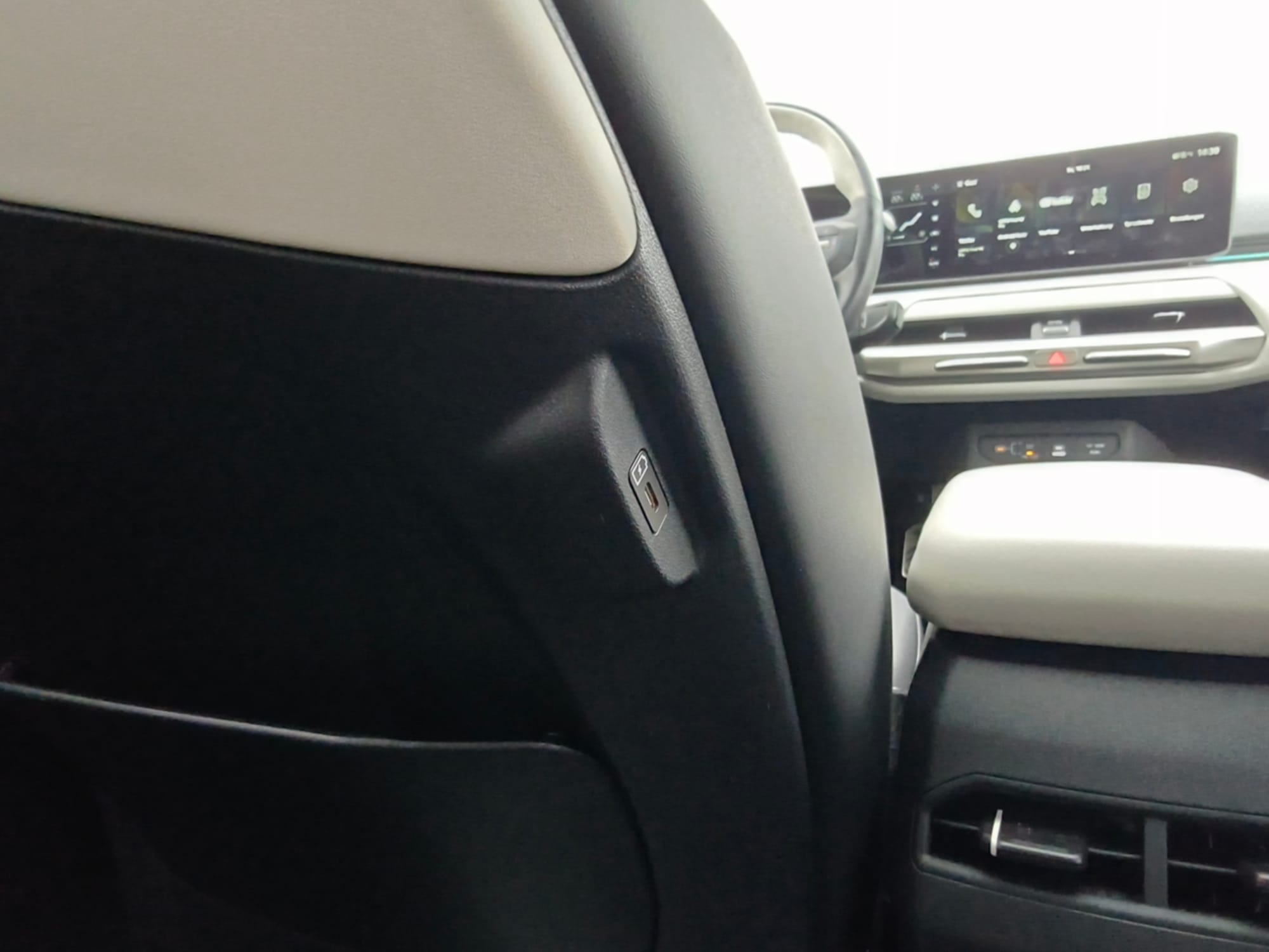Auf den beiden vorderen Plätzen darf man es sich ebenfalls auf bequemen Sitzen aus schönem Kunstleder gemütlich machen. Sie verfügen wie im Fond eine Sitzheizung und darüber hinaus sogar auch noch eine Sitzlüftung. Die Sitze lassen sich elektrisch in Handumdrehen einstellen. Es gibt viele Ablageflächen inklusive Getränkehaltern, ein Fach mit Deckel und auch ein Handschuhfach. Neben einem USB-C und 12-Volt-Anschluss lässt sich ein Smartphone auch drahtlos auf der rutschfesten Ladestation aufladen.