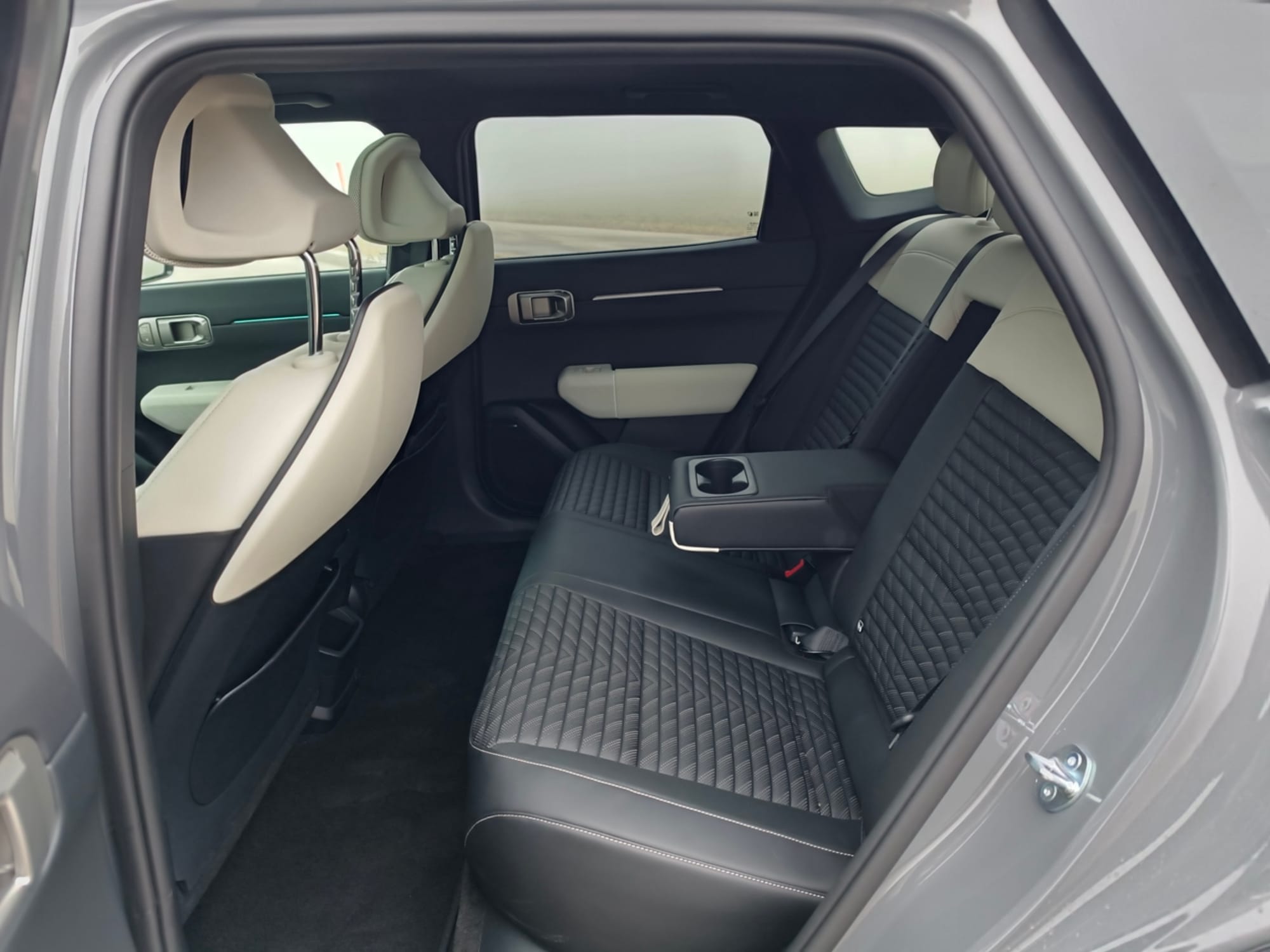 Komfort wird im EV4 Fastback GT Line grossgeschrieben. Auf den Plätzen im Fond nehmen Passagiere auf bequemen Sitzen aus Kunstleder Platz. Die Beinfreiheit ist selbst für grosse Menschen ausreichend. Jedenfalls hatte ich mit meiner Körpergrösse von knapp 1,90 m genügend Platz. Grenzwertig wird es allerdings mit der Kopffreiheit, was der leicht nach hinten abfallenden Dachlinie verschuldet ist. Zwei an den Vordersitzen angebrachte USB-C-Anschlüsse versorgen Smartphones, Tablets und ähnliche Geräte mit Strom. Der Mittelplatz lässt sich zudem zu einer Armlehne mit Becherhalter umfunktionieren.