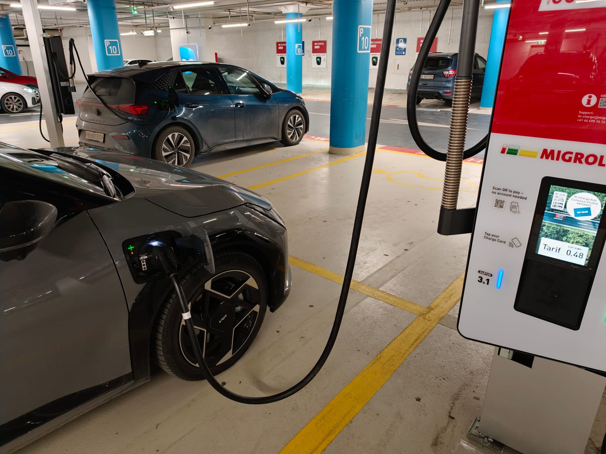 Beim EV4 Fastback verzichtet Kia leider auf die 800-Volt-Technologie, die im EV6 und EV9 zum Einsatz kommt. Das heisst auch, man muss sich etwas mehr Zeit an der Ladestation einplanen. Mit maximal 128 kW lädt der EV4 gemäss Kia an einer Schnellladestation. Über eine kurze Zeit zog der EV4 an einer IONITY-Schnellladestation (400 kW) sogar mit 135 kW und damit etwas mehr als von Kia kommuniziert. Kia gibt für einen Ladevorgang von 10 auf 80 Prozent genau 31 Minuten an. Dieser Wert lässt sich bestätigen und ist auch im Winter und bei vorkonditionierter Batterie als realistisch anzusehen. An einer Wallbox sind übrigens maximal 11 kW möglich.