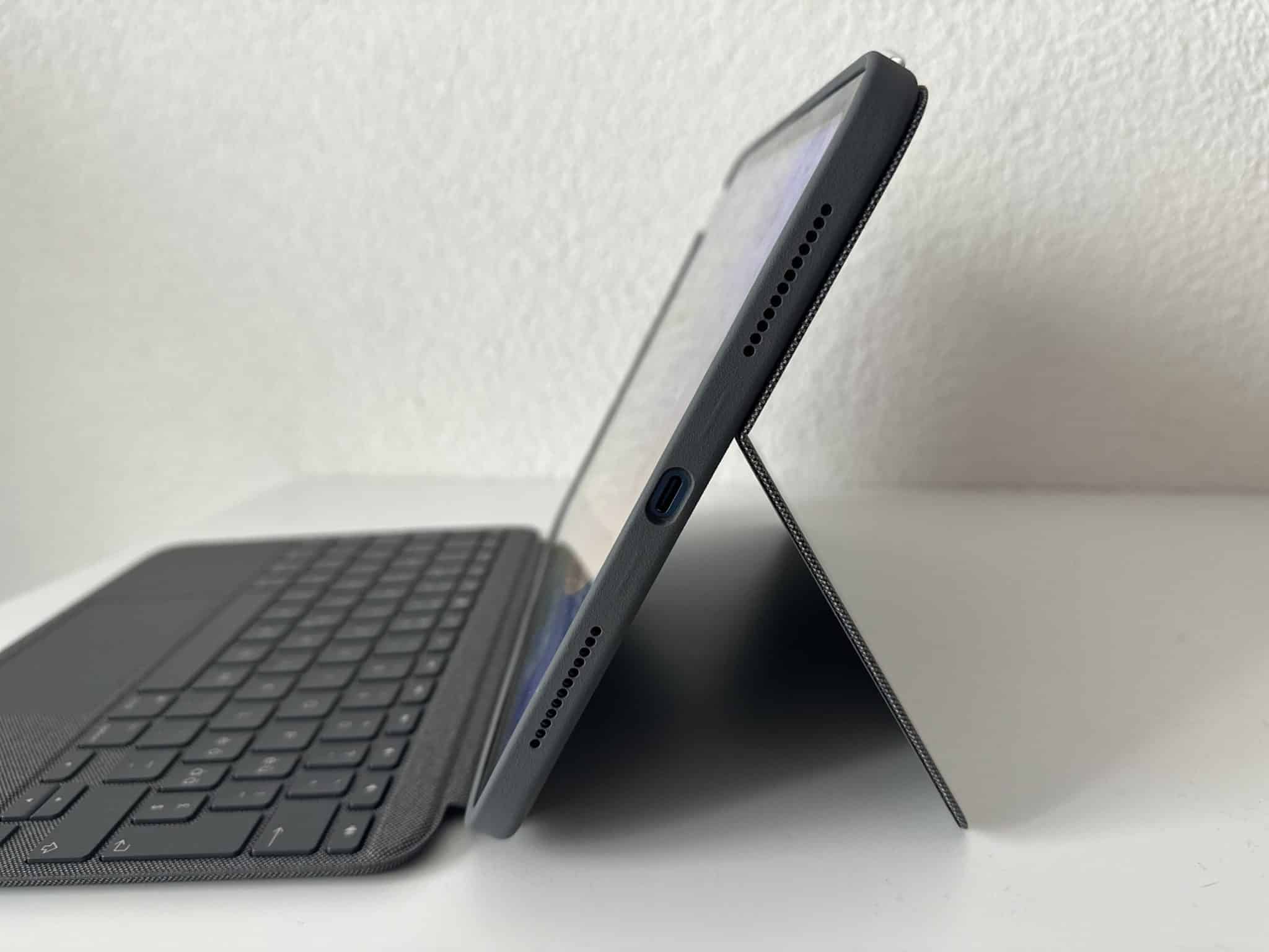 Erfreulich: Die Tastatur bietet eine Hintergrundbeleuchtung. Sie lässt sich in 16 Stufen dimmen. Abgesehen von der Tastatur, konnte auch das Trackpad überzeugen. Es unterstützt sämtliche Multi-Touch-Gesten und bietet einen klar definierten Druckpunkt. Hinzu kommen zahlreiche iPadOS-Sondertasten, wie Multimedia-Bedienelemente, Helligkeitsstufen oder Screenshots. Die Sondertasten haben sich im Alltag als besonders praktisch erwiesen.