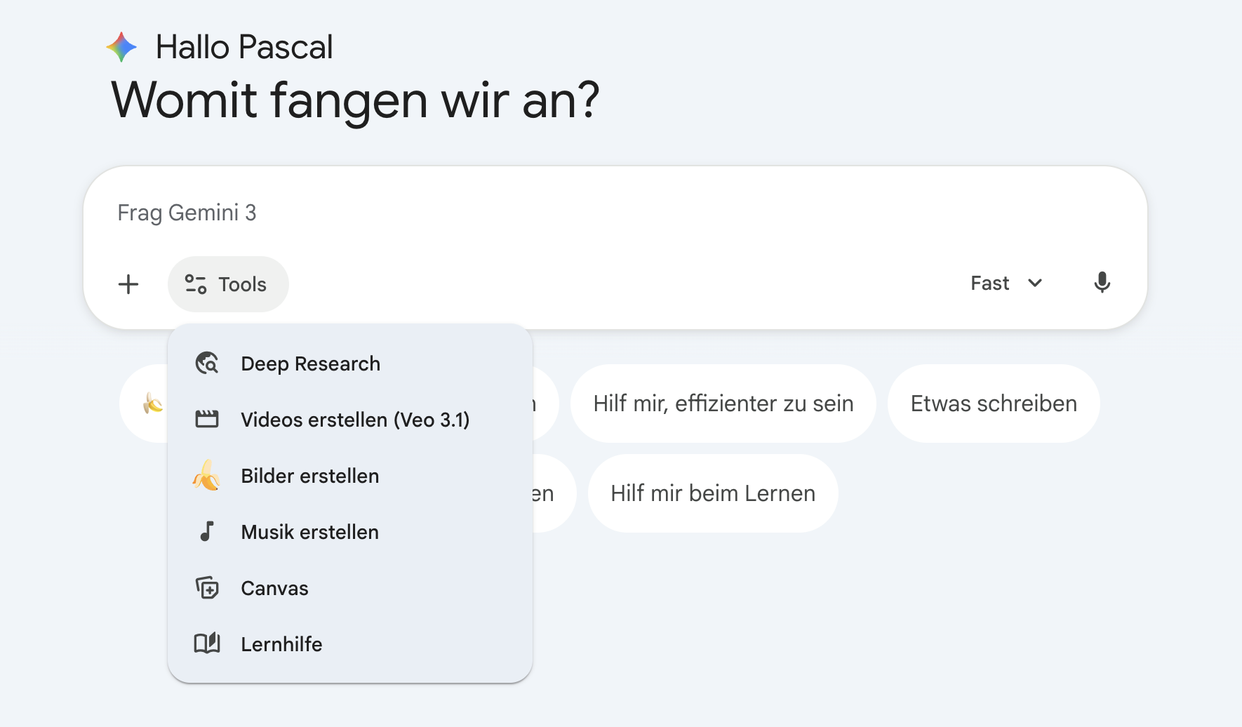 Praktisch ist auch die Funktion, ein Foto oder ein Video hochzuladen, aus dem Gemini dann ein Musikstück generiert, das zur Stimmung passt. Hier dürften sicher alle YouTuber:innen aufhorchen – und alle Anbieter von kostenpflichtigen Musikkatalogen für Videos leer schlucken.