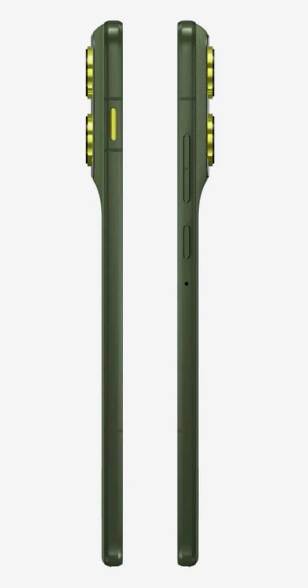 Motorola arbeitet bereits seit geraumer Zeit mit Pantone zusammen. Auch das Edge 70 wird wieder in einer besonderen Pantone-Farbe auf den Markt kommen. Diesmal ist es ein dunkles Grün, das Pantone „Bronze Green” nennt. Dabei scheint die Rückseite aus einer Art Stofftextur zu bestehen. Könnte interessant werden, wie sich das in der Hand anfühlt. Die Kamerasensoren und die neue KI-Taste erhalten eine spannende Akzentfarbe, die sich gekonnt vom Grün abhebt.