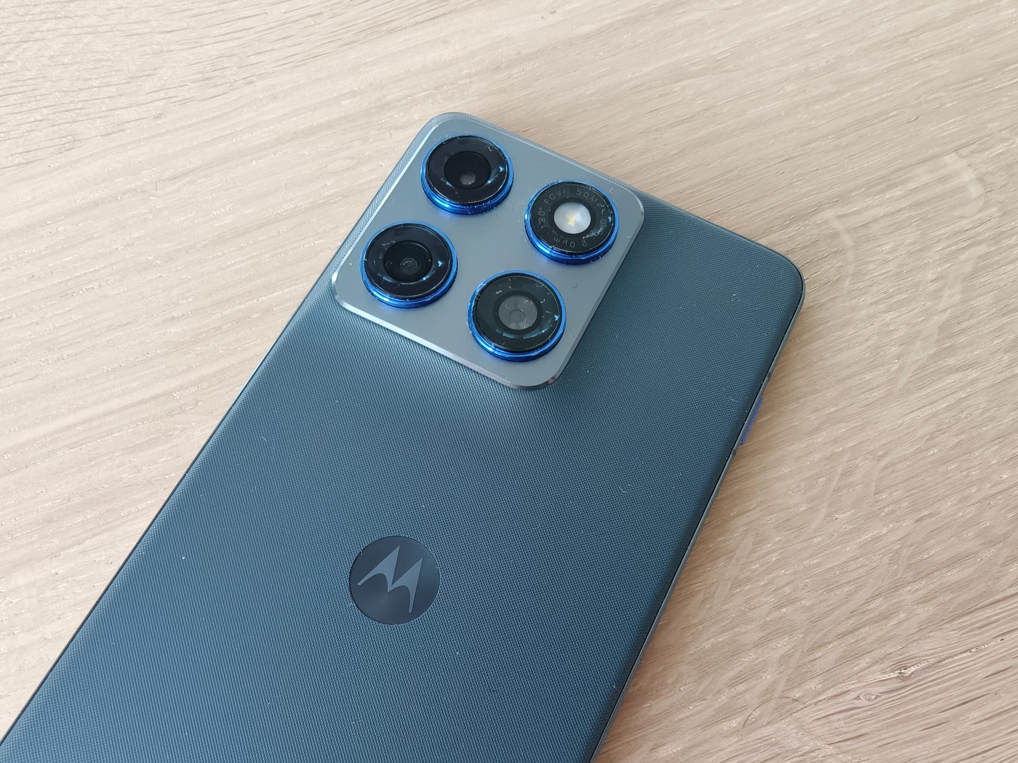 Betrachtet man das Kameramodul auf der Rückseite, könnte man meinen, dass Motorola insgesamt vier Kamerasensoren verbaut hat. Dem ist jedoch nicht so. Motorola setzt auf eine Dualkamera, die aus einer Hauptkamera und einer Ultraweitwinkelkamera mit jeweils 50 Megapixeln besteht. Die Hauptkamera verfügt zudem über eine optische Bildstabilisierung (OIS). Bei den zwei anderen, vermeintlichen Sensoren handelt es sich um den LED-Blitz und ein Lichtsensor.