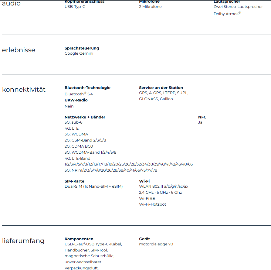Motorola Edge 70: Die vollständigen Spezifikationen auf einen Blick
