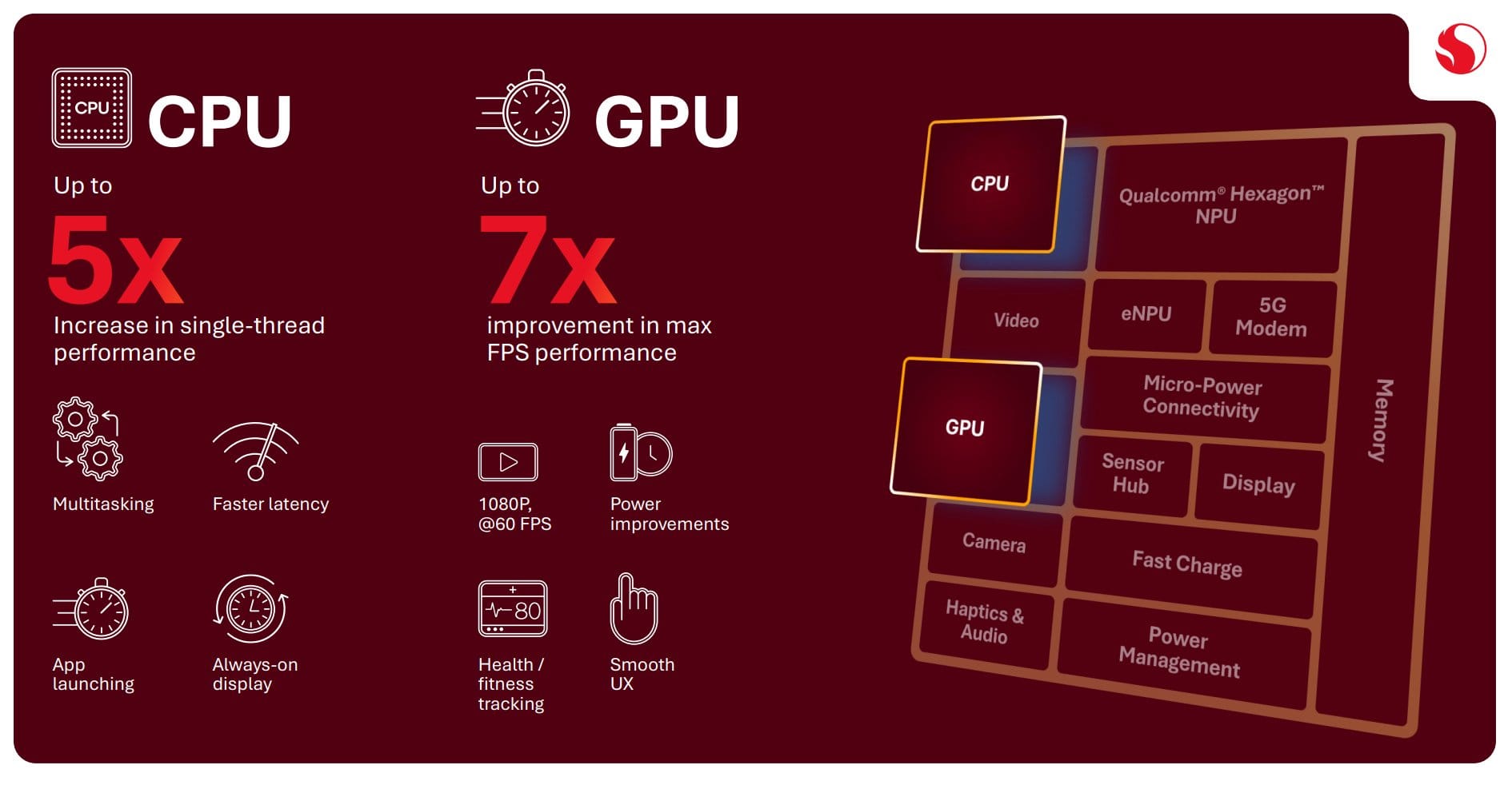Gegenüber dem Vorgängermodell erhöht sich die reine CPU-Leistung um das Fünffache und die Grafikleistung sogar um das Siebenfache. Noch beeindruckender soll die neue Hexagon NPU im Snapdragon Wear Elite arbeiten. Die NPU kümmert sich um alles rund um die Künstliche Intelligenz (NPU) und des maschinellen Lernens. KI-Funktionen können damit lokal direkt auf der Smartwatch verarbeiten werden.
