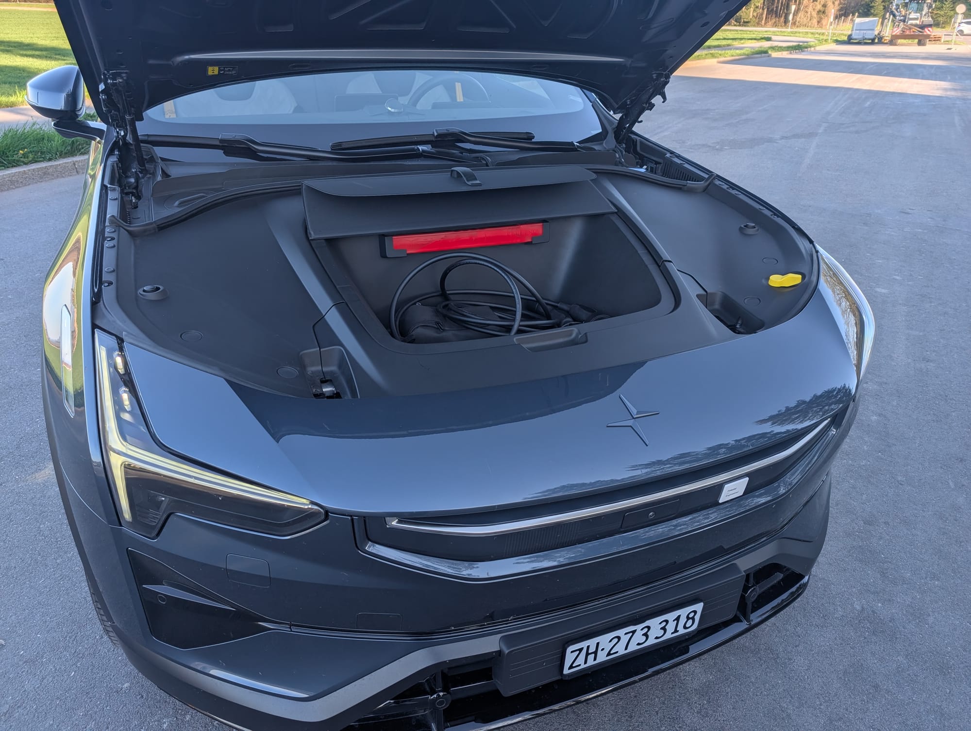 Dass der Polestar auch als luxuriöses Familienauto geeignet ist, offenbart sich im Kofferraum. Mit einem Kofferraumvolumen von 484 Liter bietet er viel Stauraum. Sollte mal etwas sperriges transportiert werden, lässt sich die Rücksitzbank umklappen. Dann stehen bis zu 1411 Liter Koferraumvolumen zur Verfügung. Hinzu kommt noch ein kleiner Frunk mit 32 Liter unter der Motorhaube. Da lässt sich beispielsweise das Ladekabel gut verstauen.