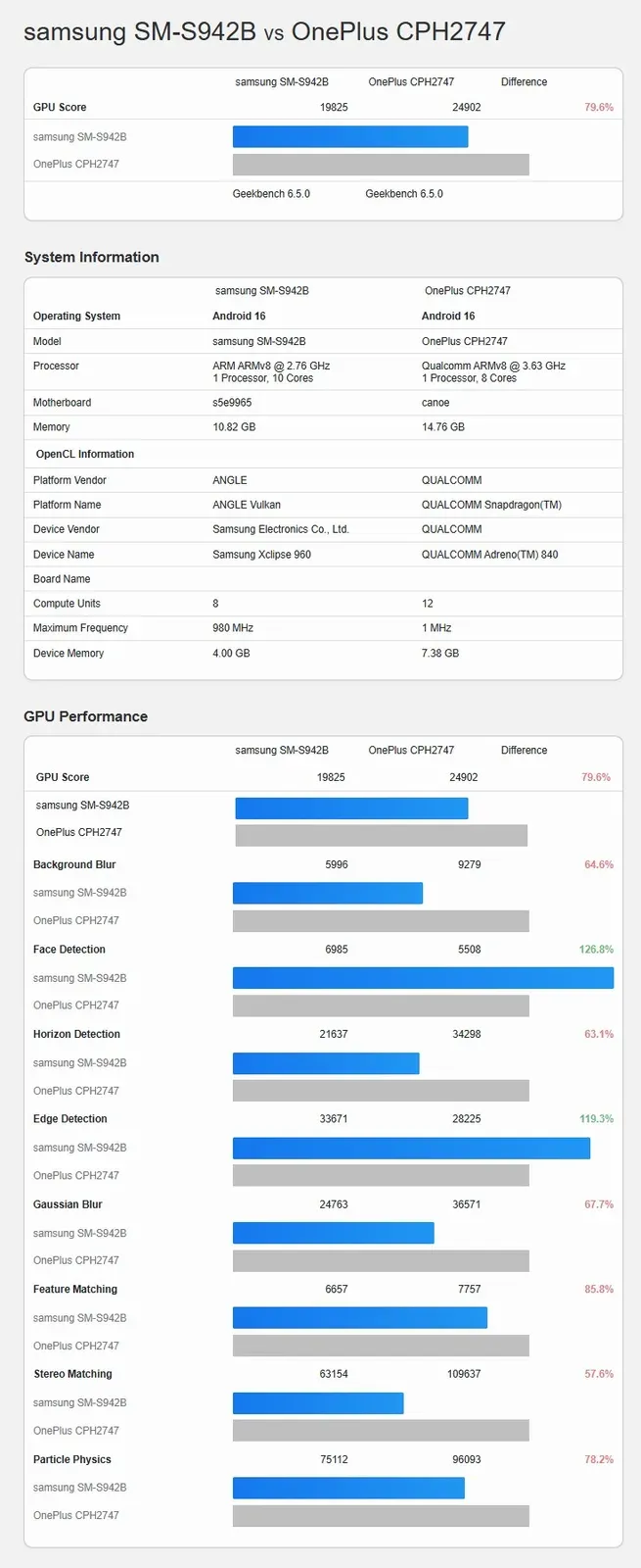 In dem jetzt aufgetauchten Benchmark wurde nicht die Leistung der CPU, sondern die der Grafikeinheit Samsung Xclipse 960 getestet. Im aktuellen Stadium kommt die Samsung-GPU schon recht nah an die Leistung der Adreno-840-GPU heran, die im Snapdragon 8 Elite Gen 5-Chip zum Einsatz kommt. Was heisst „recht nahe”? Nun, im Vulkan-Test erreicht die Xclipse 960 GPU etwa 88 Prozent der Leistung der Adreno 840 GPU, im OpenCL-Test sind es knapp 80 Prozent.