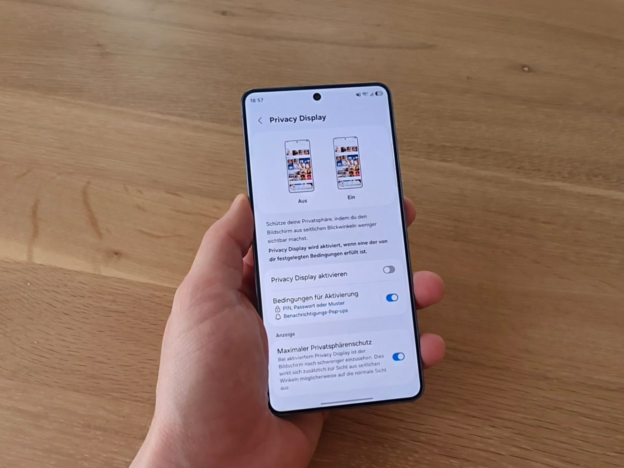 Samsung hat eigenen Angaben zufolge ganze fünf Jahre an der Funktion gearbeitet. Das ist eine lange Zeit, und tatsächlich bietet heute kein anderer Hersteller eine vergleichbare Funktion, die so gut ins System integriert ist. So lässt sich die Datenschutzanzeige in zwei Intensitätsstufen einstellen. Ausserdem kann bestimmt werden, ob sie über das ganze System oder nur in ausgewählten Apps aktiv ist und ob nur Benachrichtigungen und PIN-Eingabe „ausgeblendet” werden sollen. Das ist richtig gut gemacht.