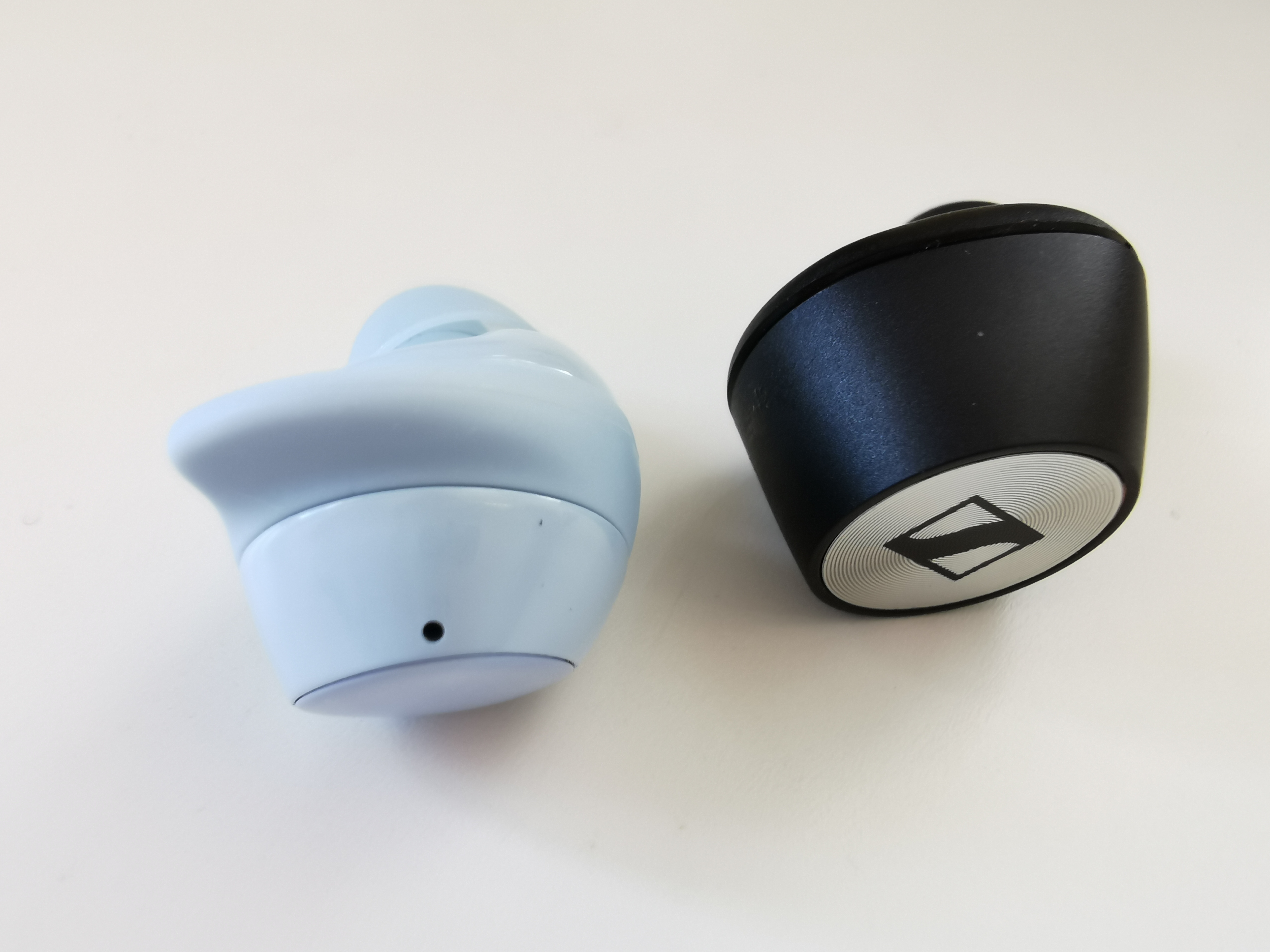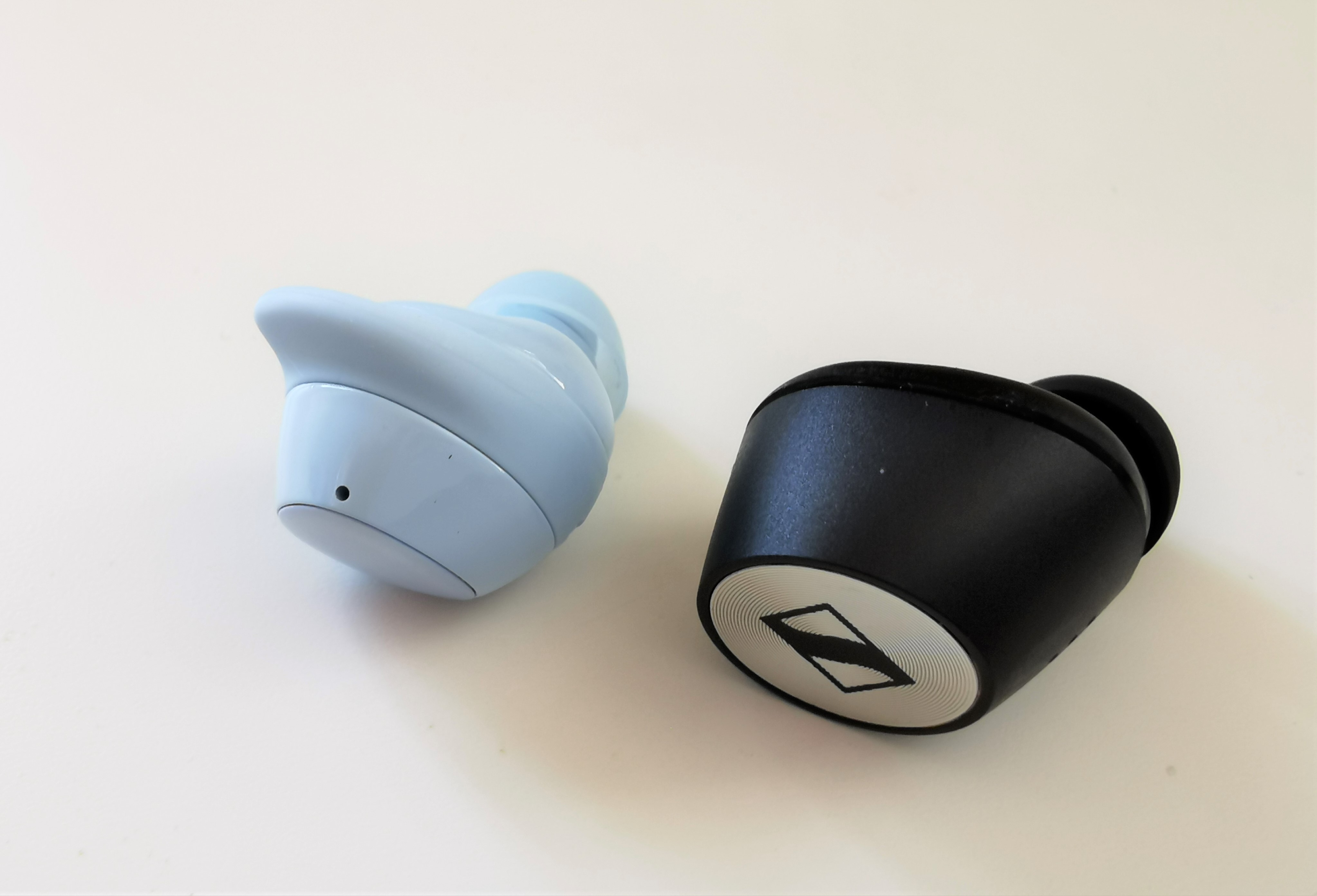 Nimmt man die Ohrstöpsel aus ihrem Case fällt einem vor allem auf, dass sie etwas klobig wirken. Ich dachte zuerst sogar, dass sie um einiges grösser als die Samsung Galaxy Buds+ sind. Legt man die beiden Kopfhörer aber nebeneinander, stellt man fest, dass die Momentum True Wireless 2 nur minim grösser sind. Die Buds+ wirken einfach schlanker, weil ihre Linien etwas – wie soll ich das jetzt nennen – ergonomischer sind.