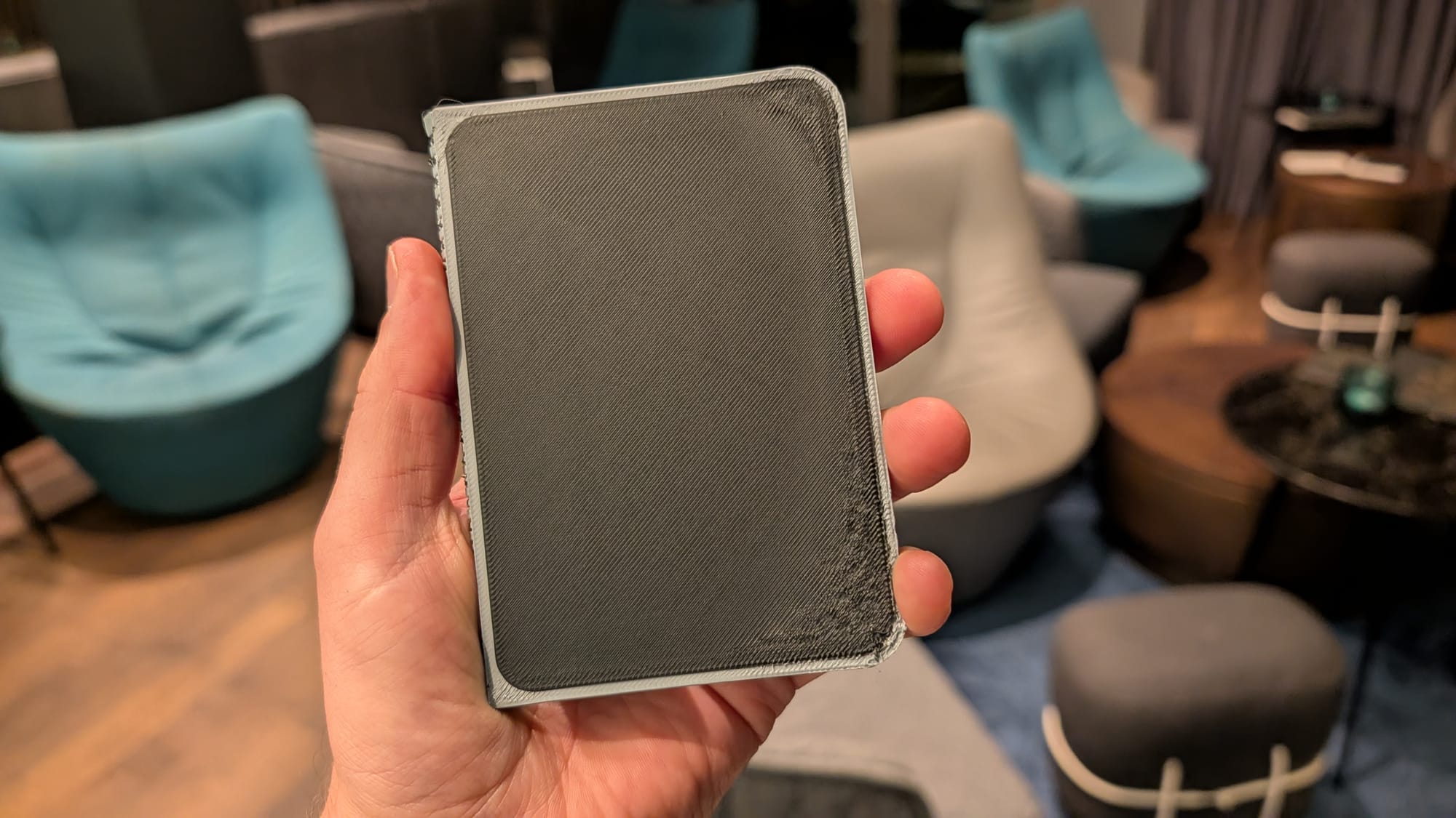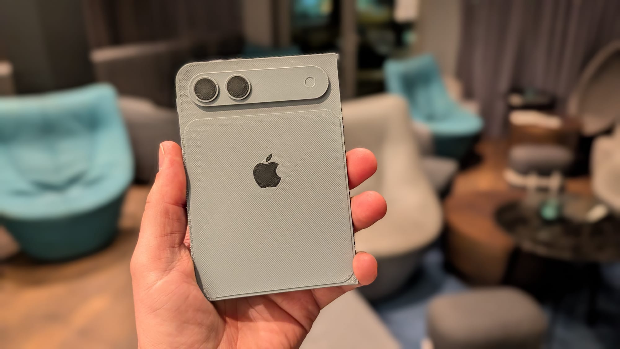 Wie ich zu so einem komme? Ganz einfach: Ein findiger User hat aus den geleakten CAD-Zeichnungen ein druckbares 3D-Modell erstellt. Dieses habe ich mir gestern zu Hause ausgedruckt. Perfekt ist es zwar nicht geworden, aber es tut seinen Zweck: Es gibt mir eine Vorstellung davon, wie ein solches Smartphone in der Handhabung sein könnte.