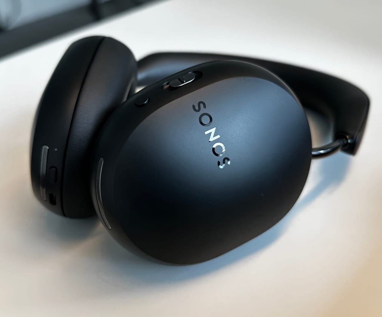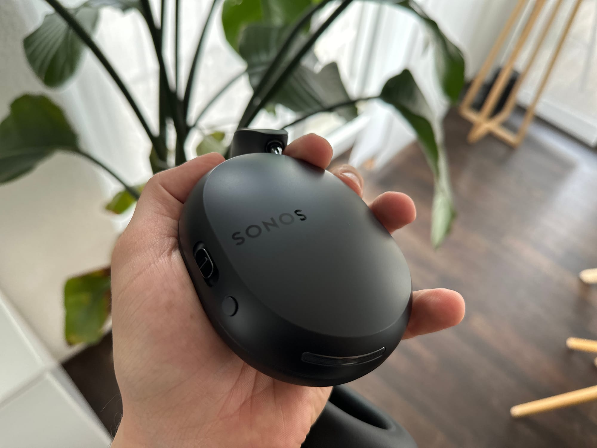An der linken Ohrmuschel gibt es den Ein- und Ausschalter. Wird dieser etwas länger gedrückt, startet der Pairing-Modus. In diesem Modus kann der Kopfhörer problemlos mit kompatiblen Bluetooth-Geräten gekoppelt werden. Hinzu kommt ein USB-C-Anschluss. Darüber wird der Over-Ear-Kopfhörer nicht nur mit Strom versorgt bzw. aufgeladen, sondern der Sonos Ace lässt sich so auch kabelgebunden als Kopfhörer verwenden.