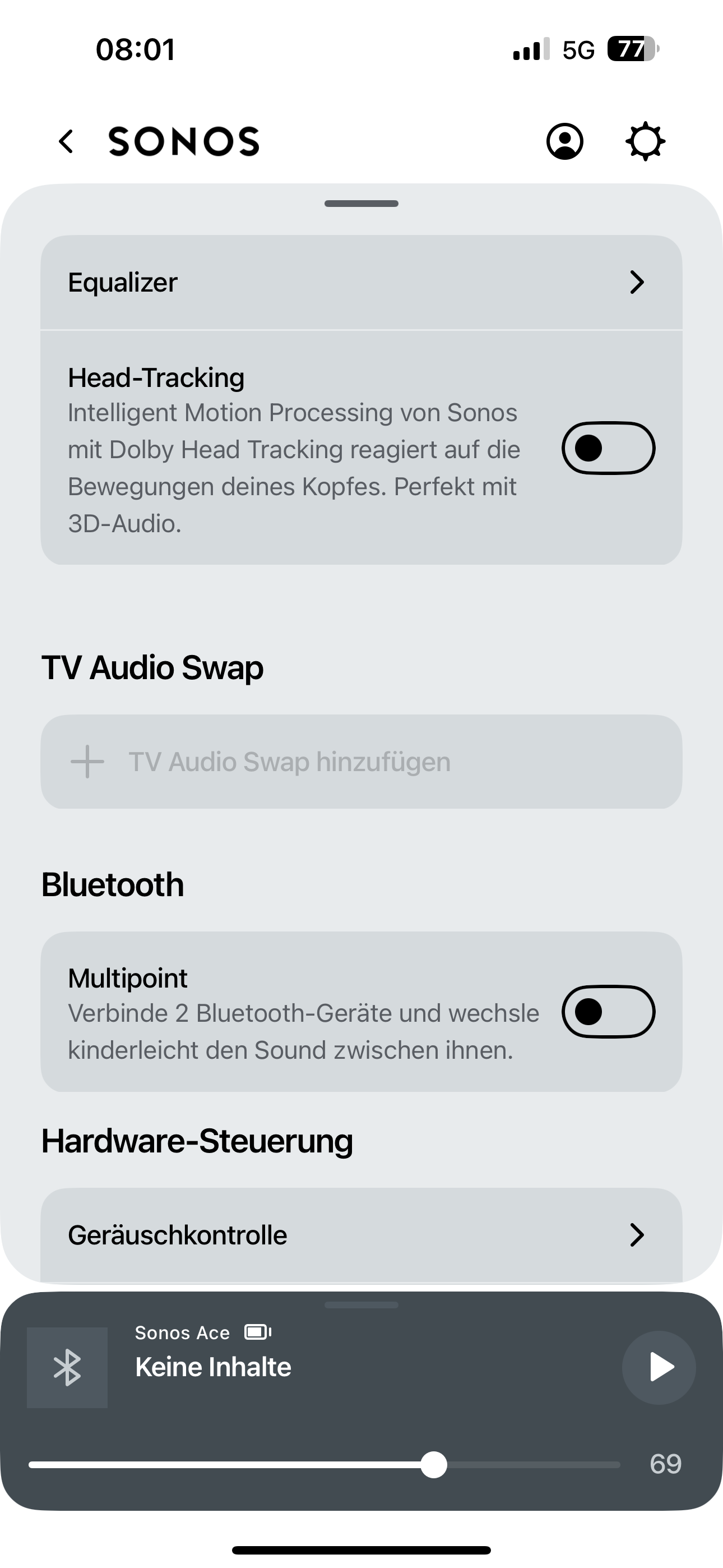 Und sind die Sonos Ace jetzt wirklich die knapp 500 Franken wert? Kommt darauf an für was du sie nutzen möchtest. Wenn du gedenkst mit den Sonos Ace unterwegs Musik zu hören, dann kannst du dich auch bei den Topmodellen der Mitbewerber:innen umsehen, etwa von Bose oder Sony. Die sind aktuell durchaus günstiger zu haben. Wenn du aber sowieso eine Sonos-Soundbar bei dir zuhause hast, ein iPhone oder iPad verwendest und auch gerne Filme oder Serien über die Kopfhörer schauen möchtest, dann lohnt sich durchaus der Aufpreis auf die Sonos Ace. Dank der TV Audio Swap harmoniert der Ace bestens mit deiner Sonos-Soundbar (aktuell nur Sonos Arc).
