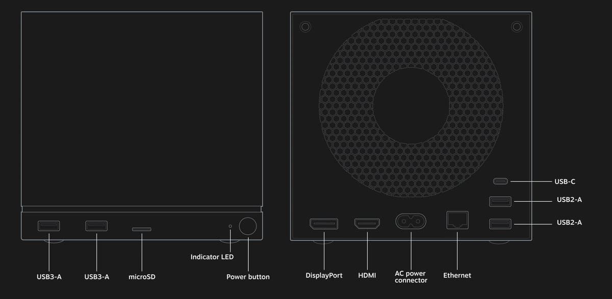 Die Steam Machine bietet eine Vielzahl an Anschlussmöglichkeiten. Es gibt ein HDMI 2.0-Ausgang (4K@120Hz) und ein DisplayPort 1.4 (4K@240 Hz oder 8K@60 Hz). Beide Anschlüsse unterstützen HDR und FreeSync. Zwei USB-A 3.2 Gen 1 Anschlüsse sind auf der Vorderseite und zwei USB-A 2.0 sowie einen USB-C 3.2 Gen 2 auf der Rückseite zu finden. Hinten gibt es darüber hinaus noch einen Gigabit-Ethernet-Anschluss. Drahtlos wird WLAN 6e und Bluetooth 5.3 unterstützt.