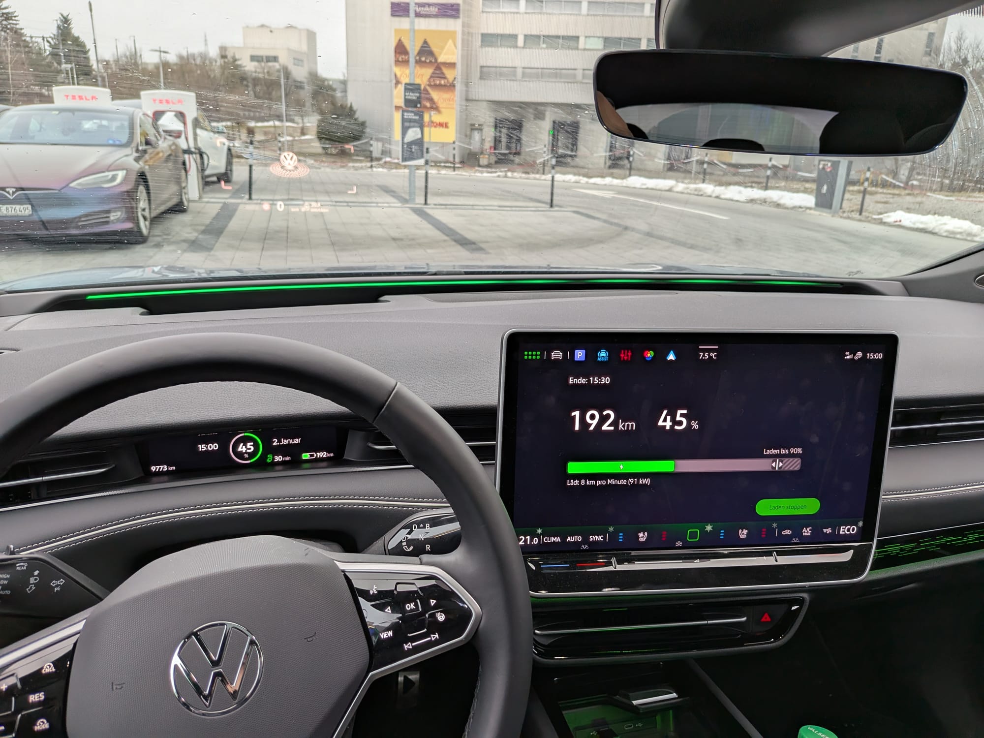 Einziger Wermutstropfen ist die etwas enttäuschende Ladeleistung. Trotz vorkonditionierter Batterie erreichte ich an keiner Ladestation die maximal möglichen 175 kW. Mehr als etwas über 100 kW wollte der ID. 7 partout nicht laden. Keine Ahnung, woran das lag. Vielleicht waren es doch die winterlichen Temperaturen, die eine höhere Ladeleistung verhinderten?