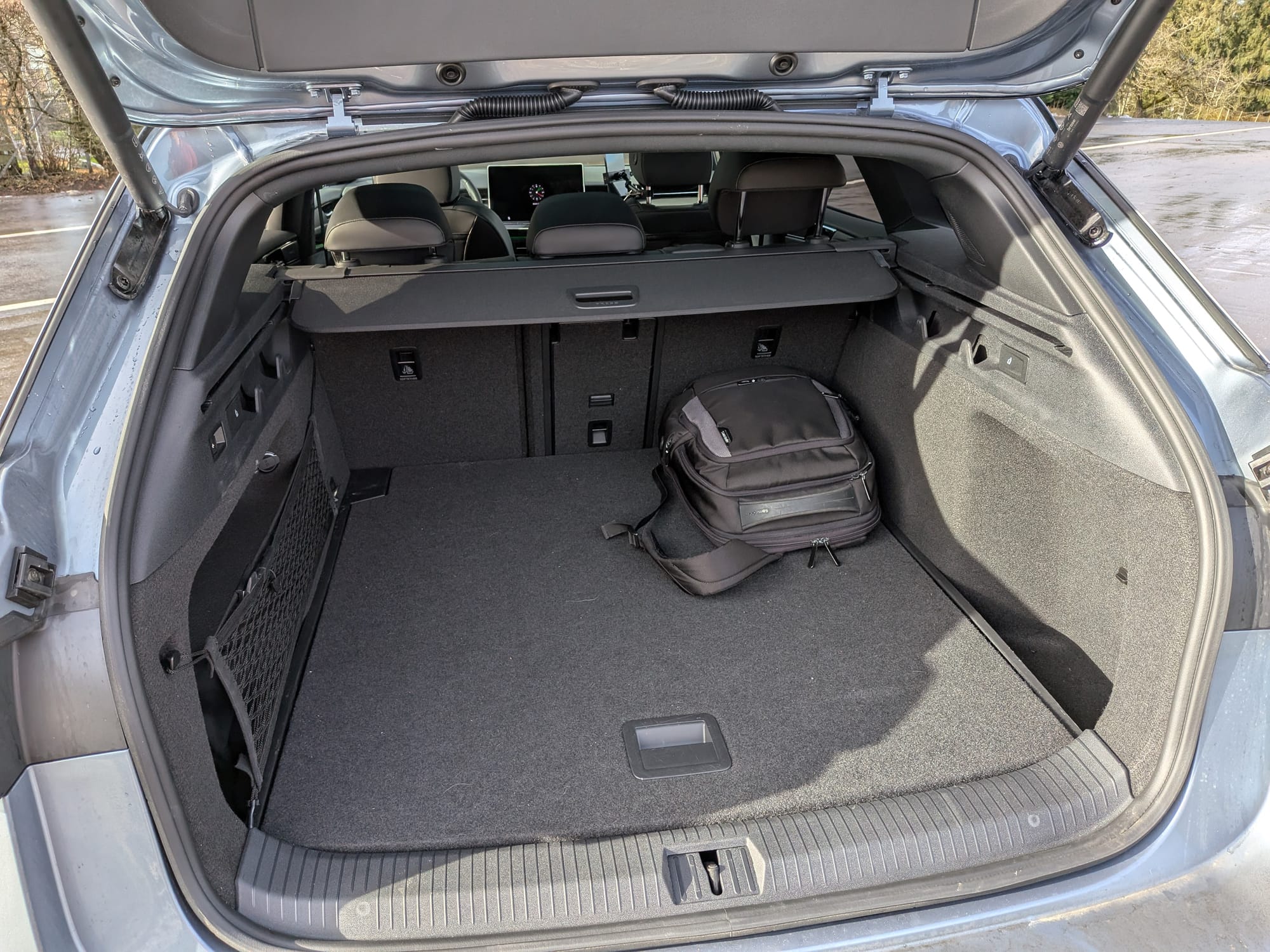 Ein kleiner Segen für die Familie ist der Kofferraum. Er fasst bis zu 605 Liter und bietet damit mehr als genug Stauraum - auch für eine dreiköpfige Familie mit Hund. Bei umgeklappter Rücksitzlehne erhöht sich das Volumen gar auf bis zu 1714 Liter. Der ID.7 Pro Tourer verfügt über einen weiteren kleinen Stauraum unter dem Ladeboden im Kofferraum. Hier findet zum Beispiel das Ladekabel seinen Platz. Ein Frunk unter der Motorhaube gibt es hingegen nicht.