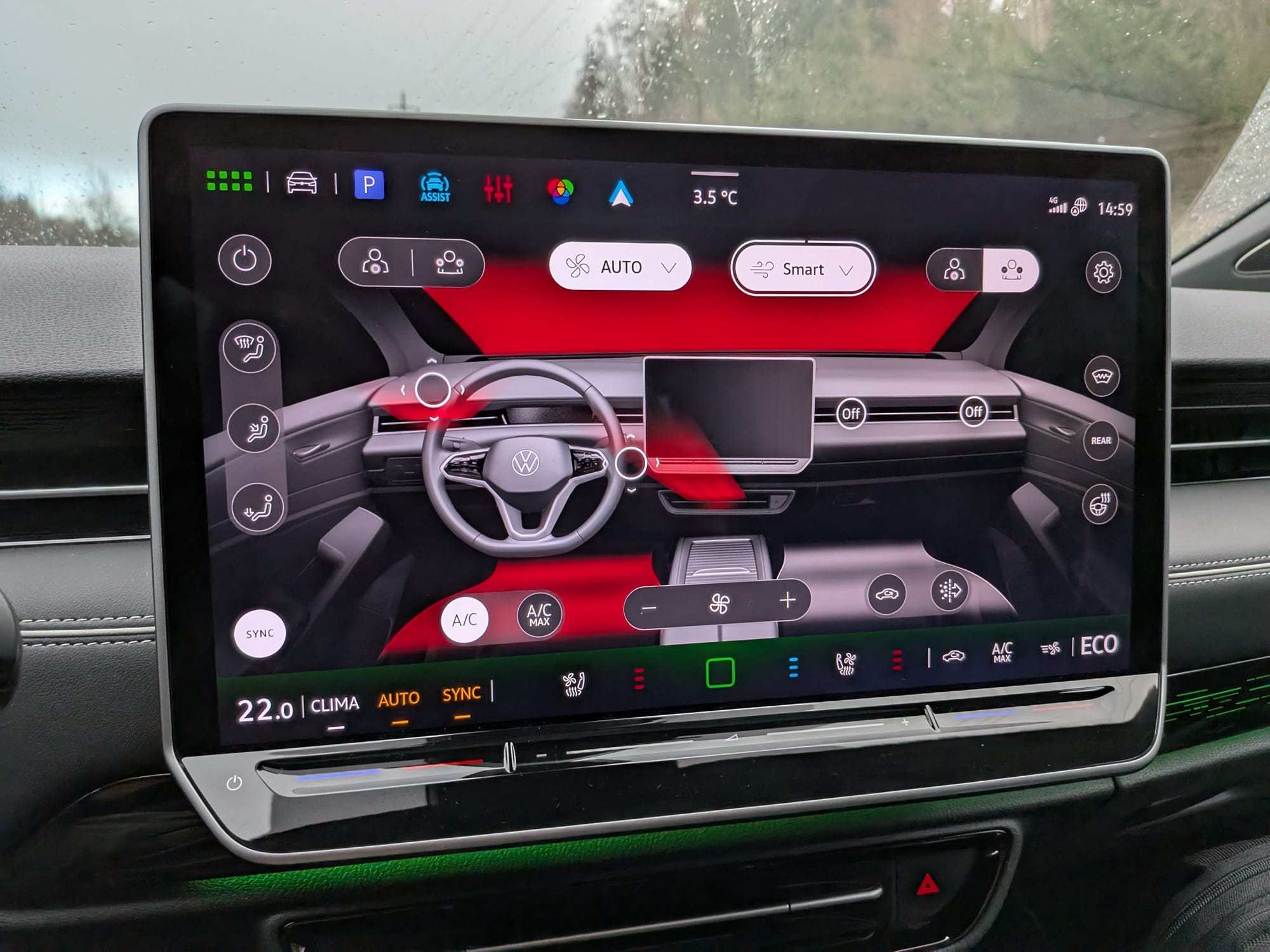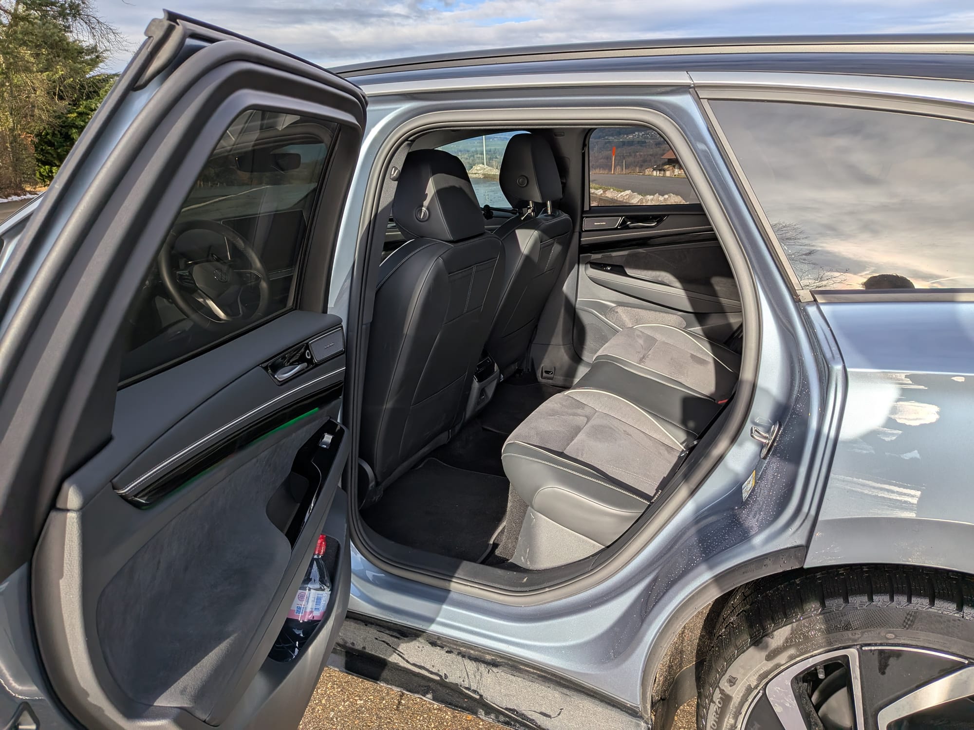 Ein besonderes Lob verdient VW für die Premium-Sitze für Fahrer und Beifahrer. Sie bieten viel Platz, sind äusserst bequem und bieten dennoch genügend Halt, wenn es mal etwas schneller um die Kurve gehen soll. Je nach Ausstattungsvariante kommen bei den vorderen Sitzen eine Sitzheizung und -kühlung, sowie eine Massagefunktion dazu. Letztere habe ich und besonders auch meine Tochter als sehr angenehm empfunden. Im Fond gibt es immerhin noch eine Sitzheizung, damit im Winter auch ja niemand frieren muss. Auch können auf der Rückbank dank zwei USB-C-Anschlüssen externe Geräte aufgeladen werden.