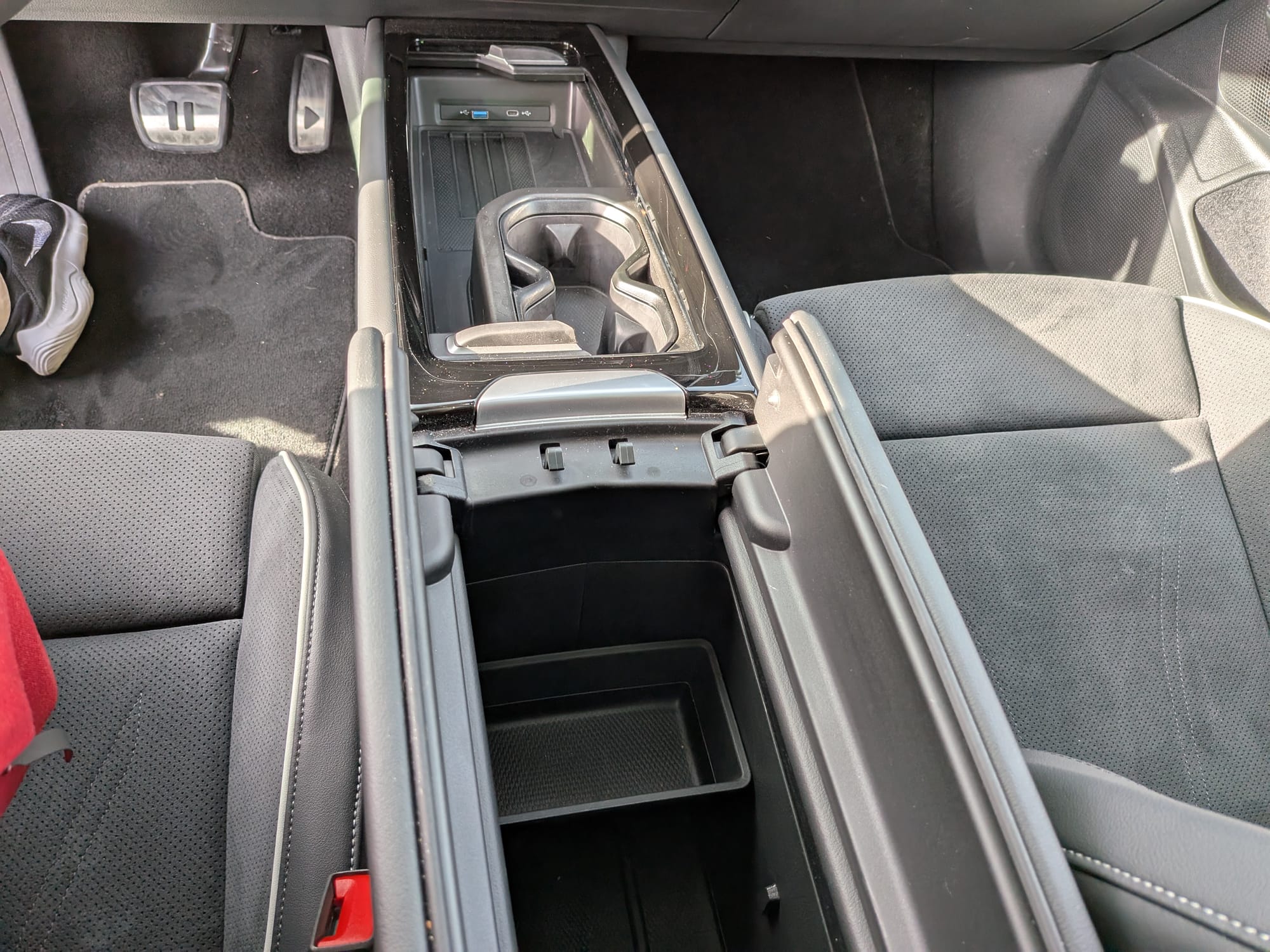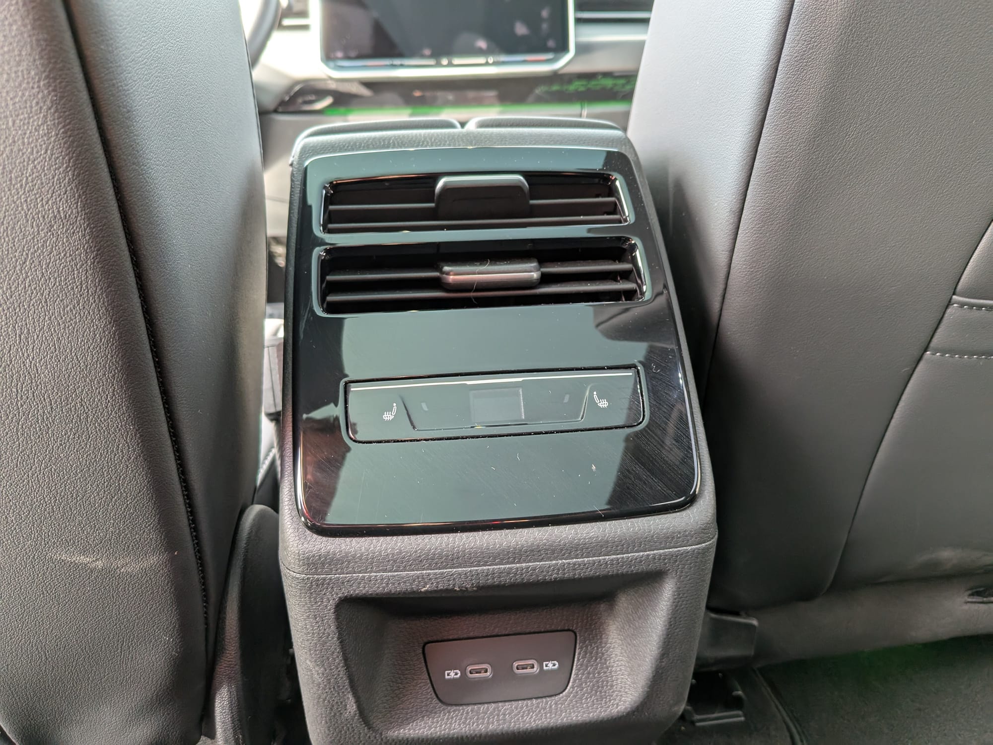 Links: USB-Anschlüsse, Sitzheizung und Lüftung für die Fahrgäste / Rechts: Viel Stauraum, USB-Anschlüsse und Wireless-Charging-Pad | Bilder: vybe