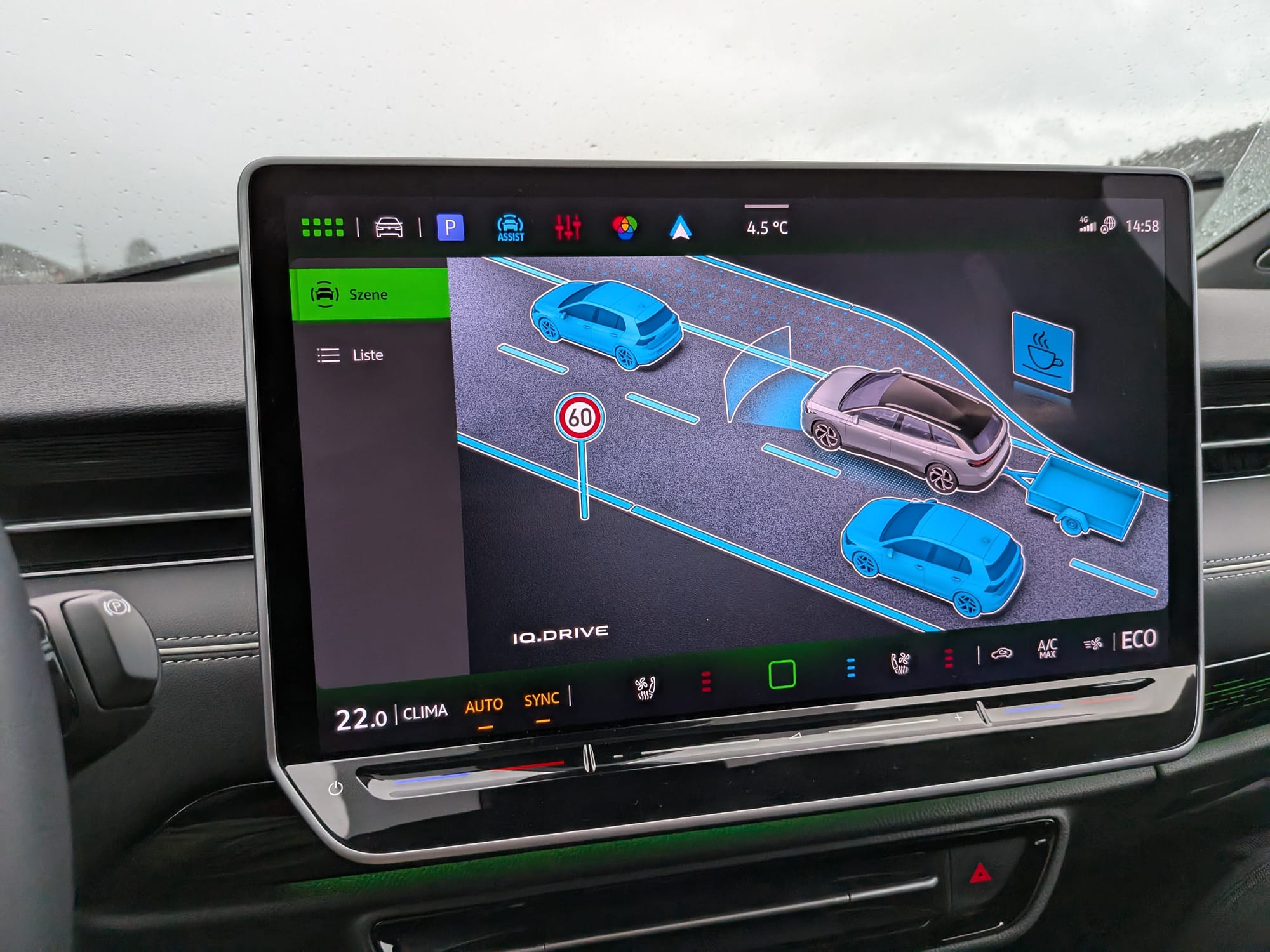 Das kleine Instrumentendisplay ist zwar weiterhin vorhanden, dafür gibt es aber ein grosses Head-Up-Display mit sinnvoller Augmented-Reality-Anzeige (AR). Das für meinen Geschmack zu kleine Instrumendisplay wird dadurch gut kompensiert. Hinzu kommt ein grosses Display über der Mittelkonsole, über das sich alle Funktionen des Fahrzeugs steuern lassen.