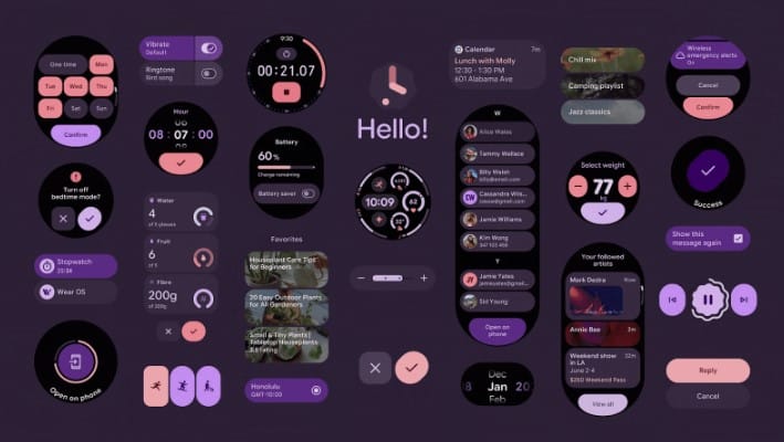 - ProtoLayout Material 3: Neue Bibliotheken, die Entwicklern helfen, Material 3 Expressive in ihren Apps und Kacheln zu implementieren, einschließlich dynamischer Farbthemen und Komponenten, die für runde Bildschirme optimiert sind.